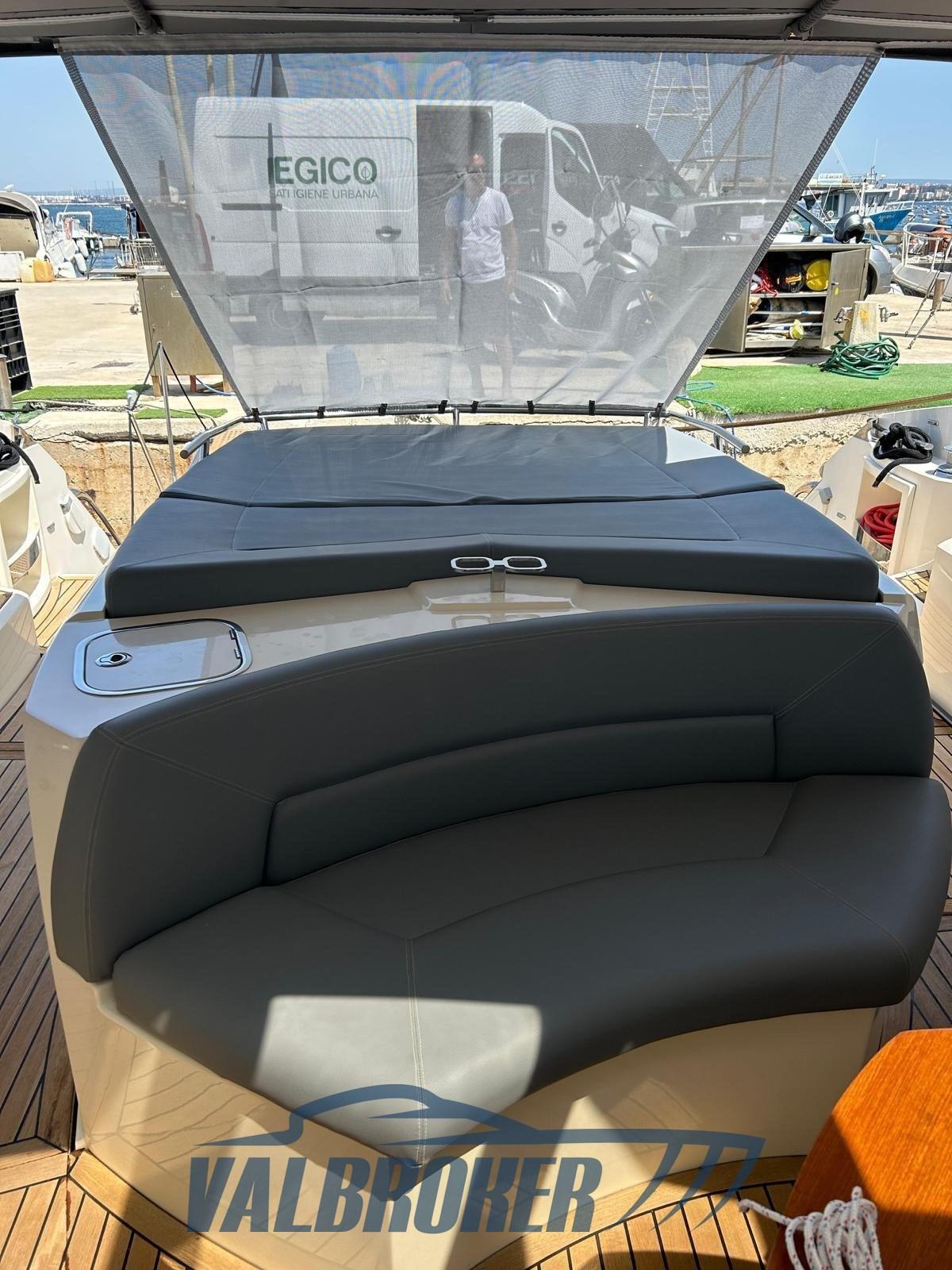 Eau sous pression, 6 Batteries (2023), Douche de cockpit, Indicateurs de flaps (Lenco), Passerelle (idraulica a scomparsa, teak), Plateforme arrière (teak), Cockpit en teck, table de cockpit (teak).