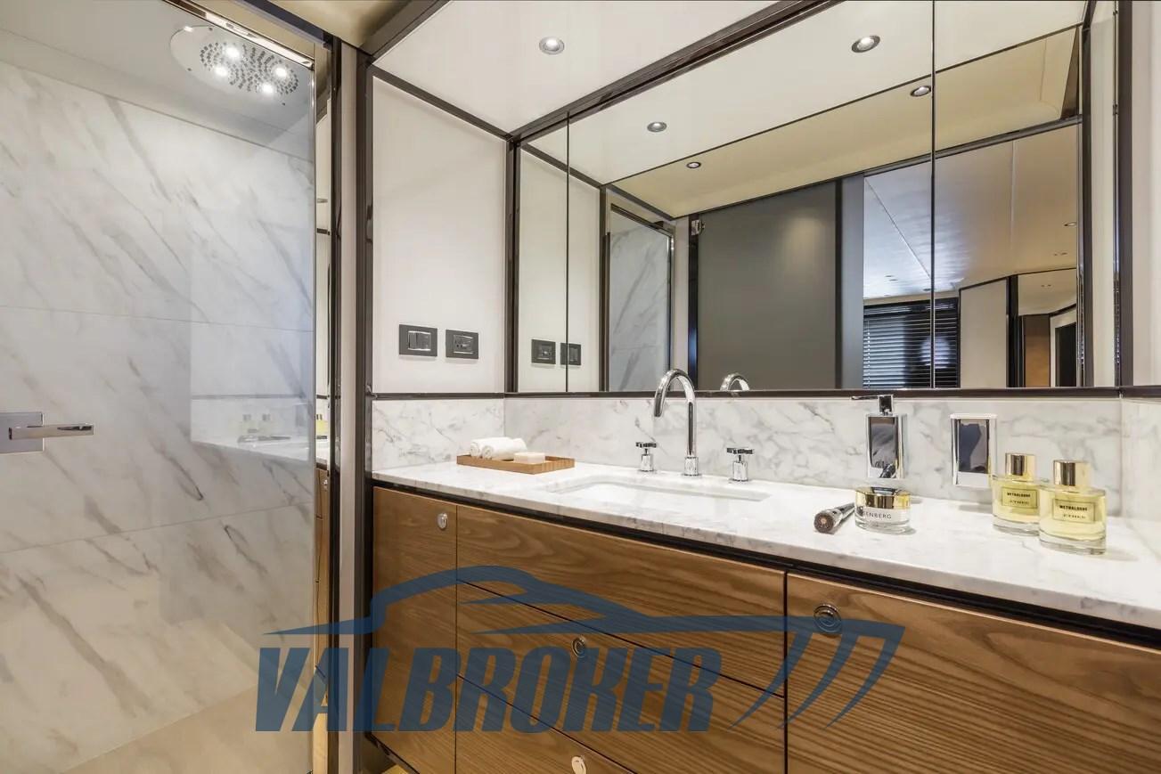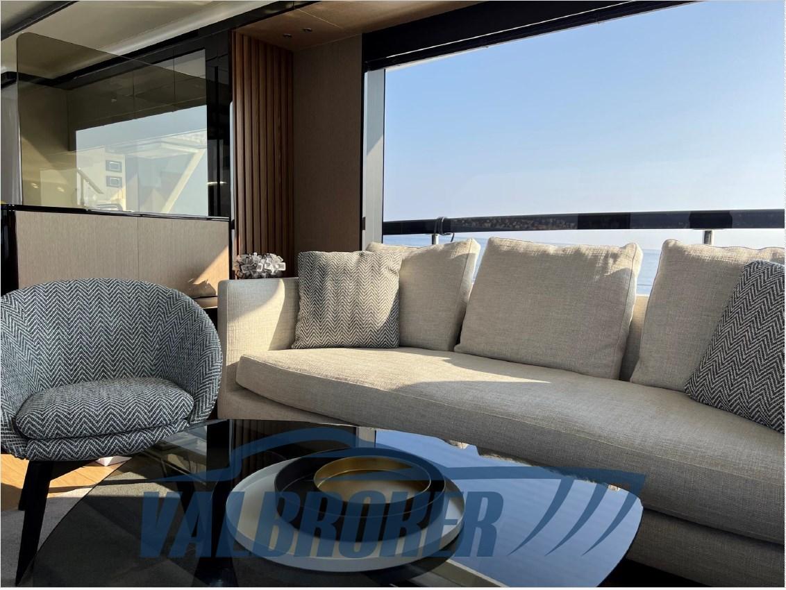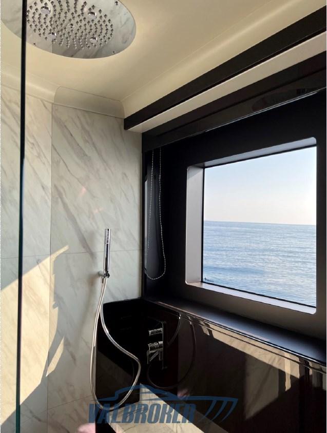 Ancre (inox ultra con catena80kg), Eau sous pression, Passavant en teck, Douche de cockpit, Phare de poursuite (doppio comando), Hard top (soft top vetroresina bianco), Éclairage de courtoisie, Spots sous-marins, Passerelle (elettroidraulica a scomparsa, teak), Plateforme arrière (teak, idraulica), Cockpit en teck, Prise de quai, Echelle de bain (integrata alla piattaforma), table de cockpit (con copertura).