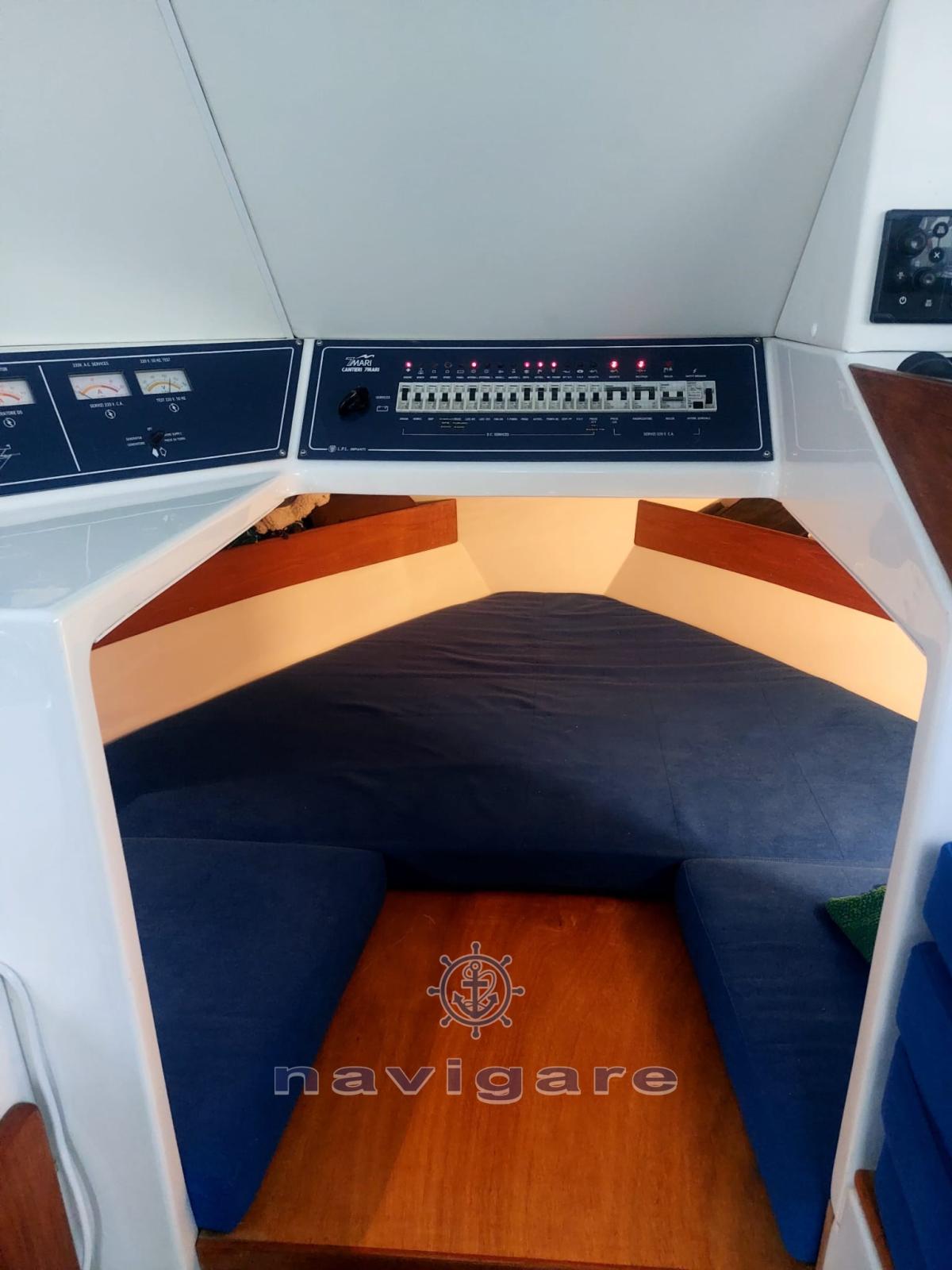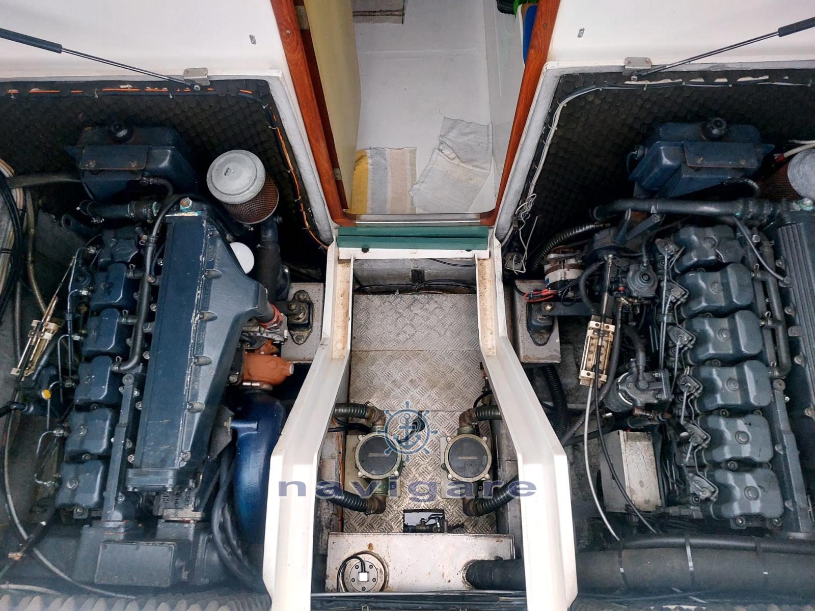 Un bateau dans la ligne d’arbre en parfait état prêt à naviguer, le bateau à faible consommation de carburant, une vitesse criciera de 21 nœuds consomme un total de 50 litres par heure. Il ne roule qu’à la volée protégé par un hard-top rigide, pour avoir obtenu plus d’espace à l’intérieur de la cabine, ajouté un accélérateur arrière pour faciliter les manœuvres de pêche, des auvents et un ombrage complet pour le cockpit avec des tendeurs en carbone