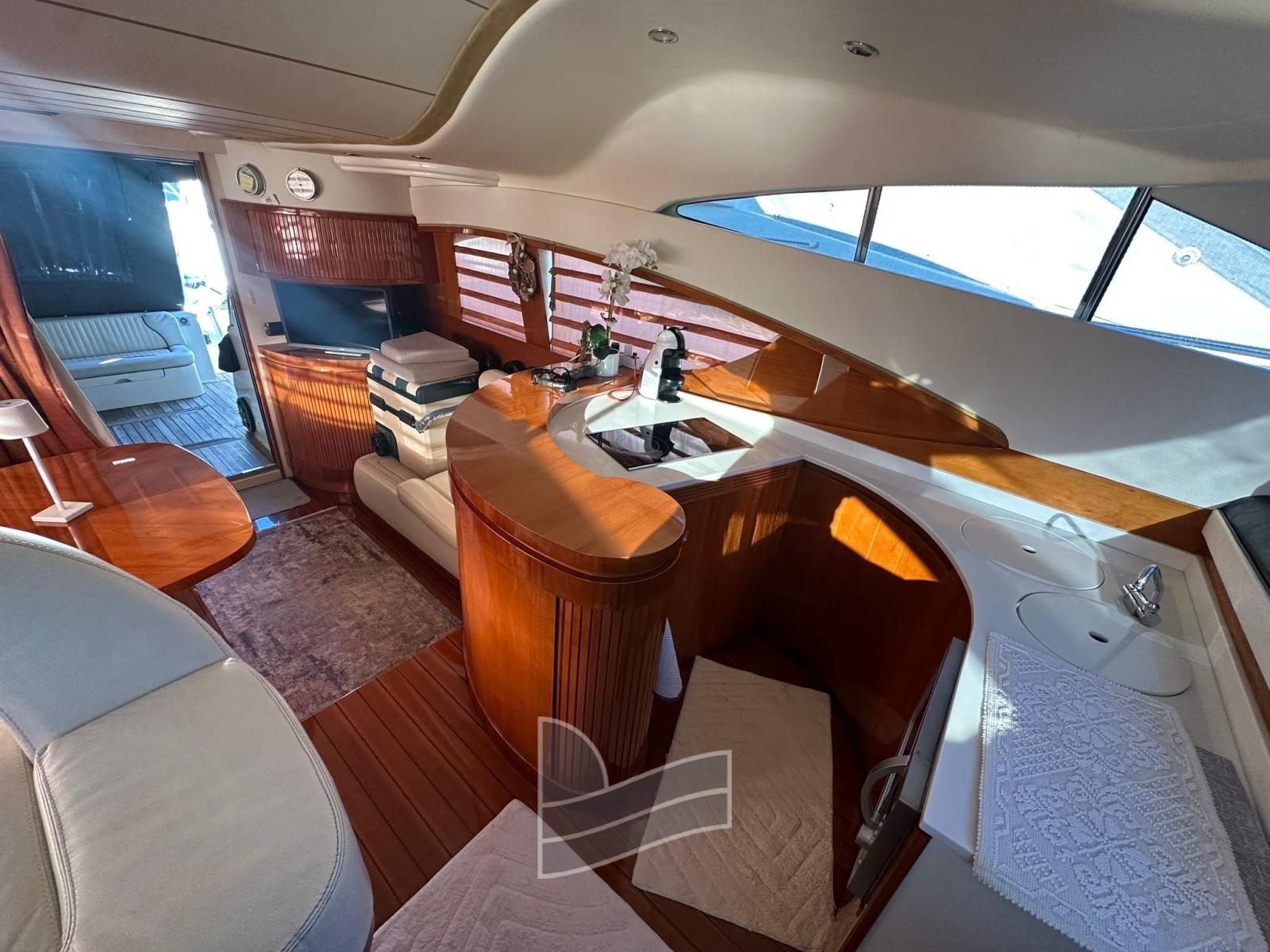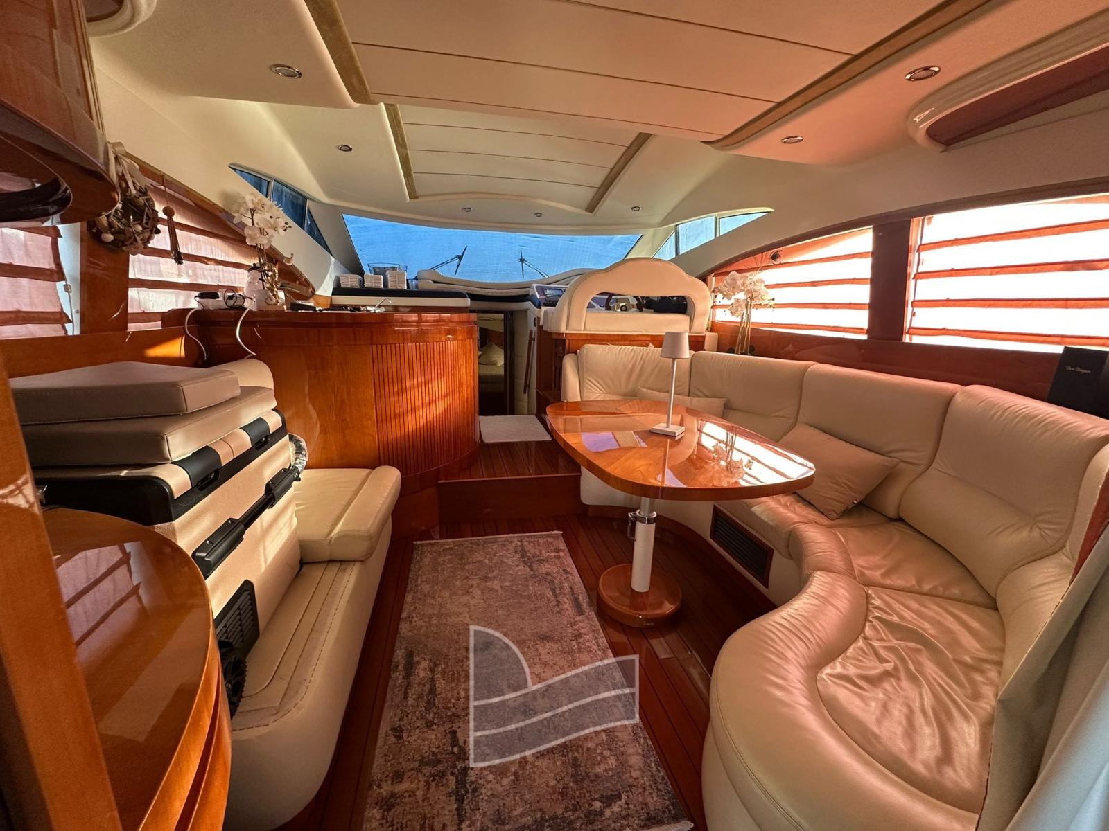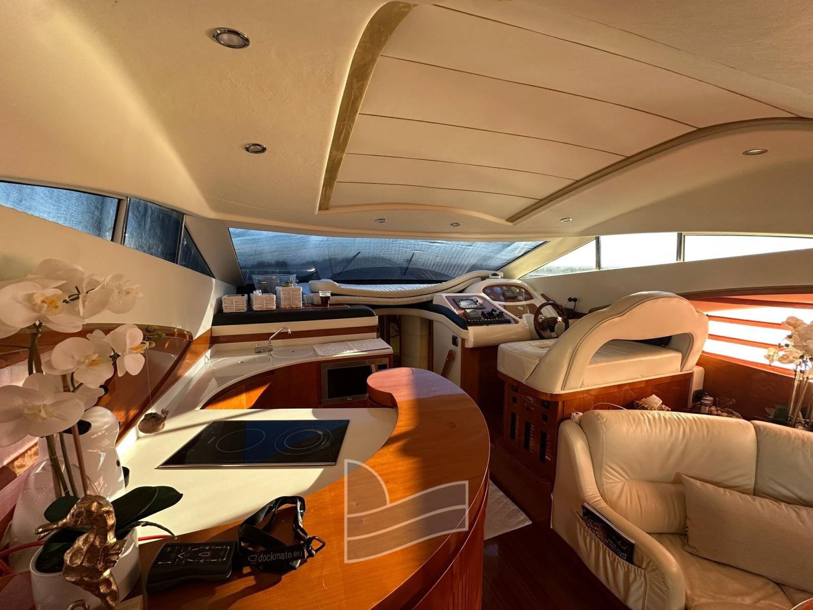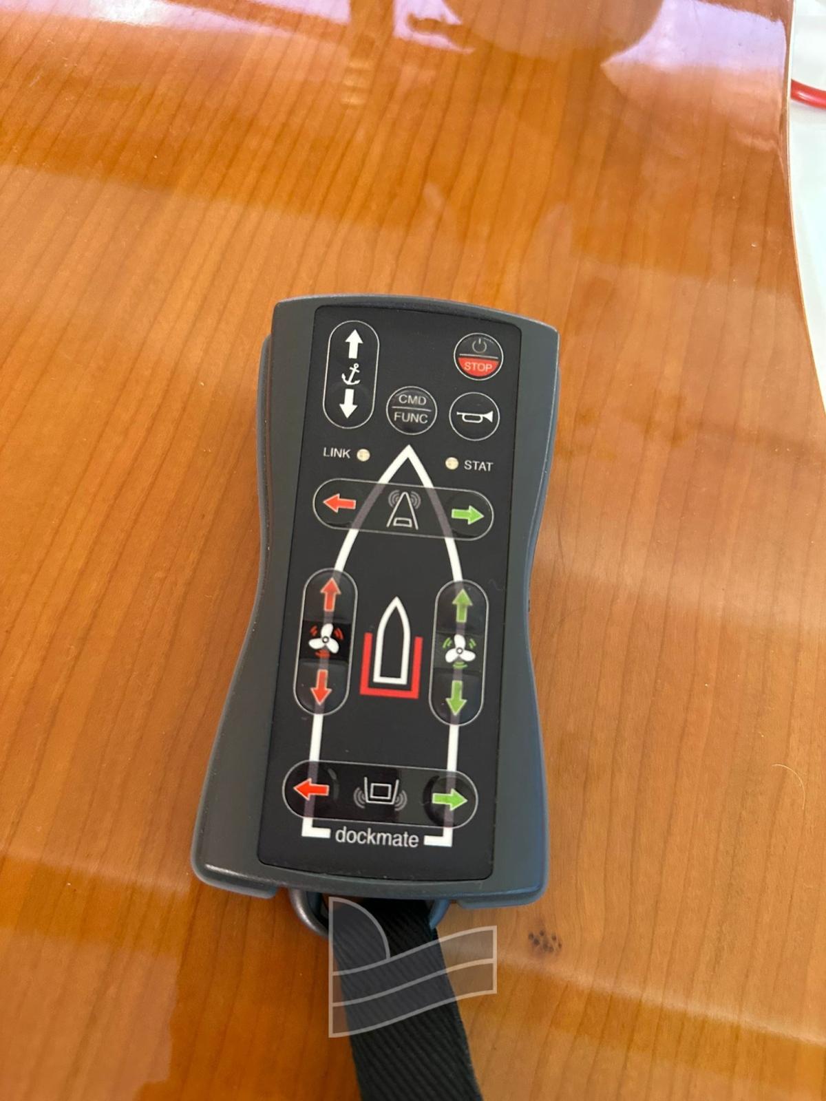 Alarme moteur, Eau sous pression, Câble d’alimentation à quai, Douche de cockpit, Phare de poursuite, 2 Flaps hydrauliques, Extincteur(s) fixe(s), Passerelle, Plateforme arrière (di poppa in teak), Porte latérale, Cockpit en teck, Prise de quai, Rollbar, Guindeau électrique, Echelle de bain, table de cockpit, Corne.