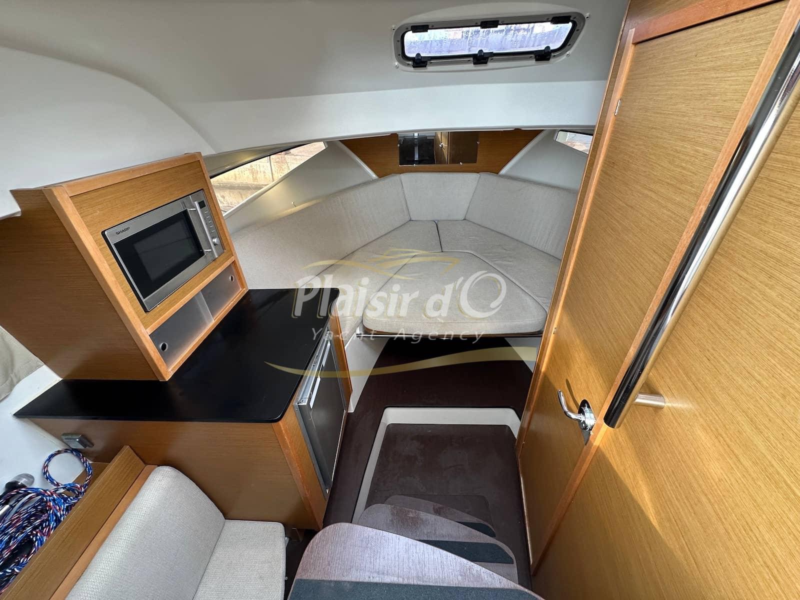 Nombreuses options : cockpit teck, GPS/sondeur, commandes Yamaha électriques, Tables de cockpit teck, Guindeau électrique, Bimini Inox, WC marin, chauffe eau, chargeur batterie, micro ondes, réchaud gaz, réfrigérateur …