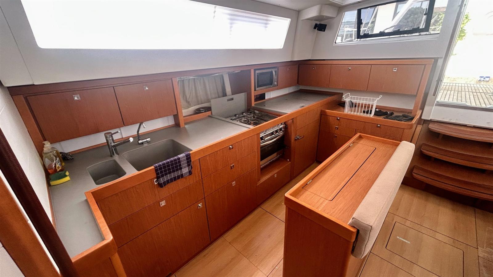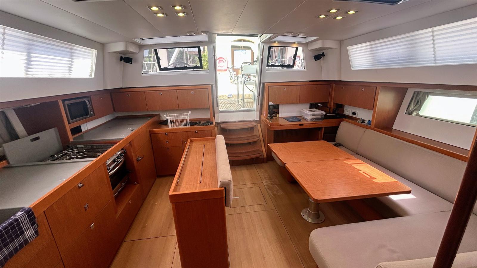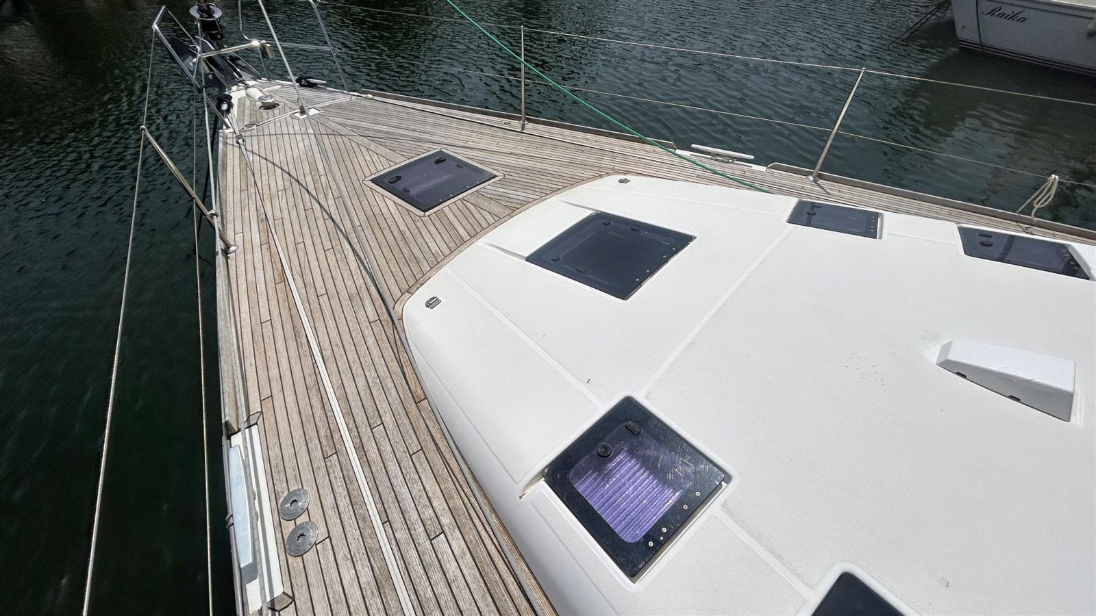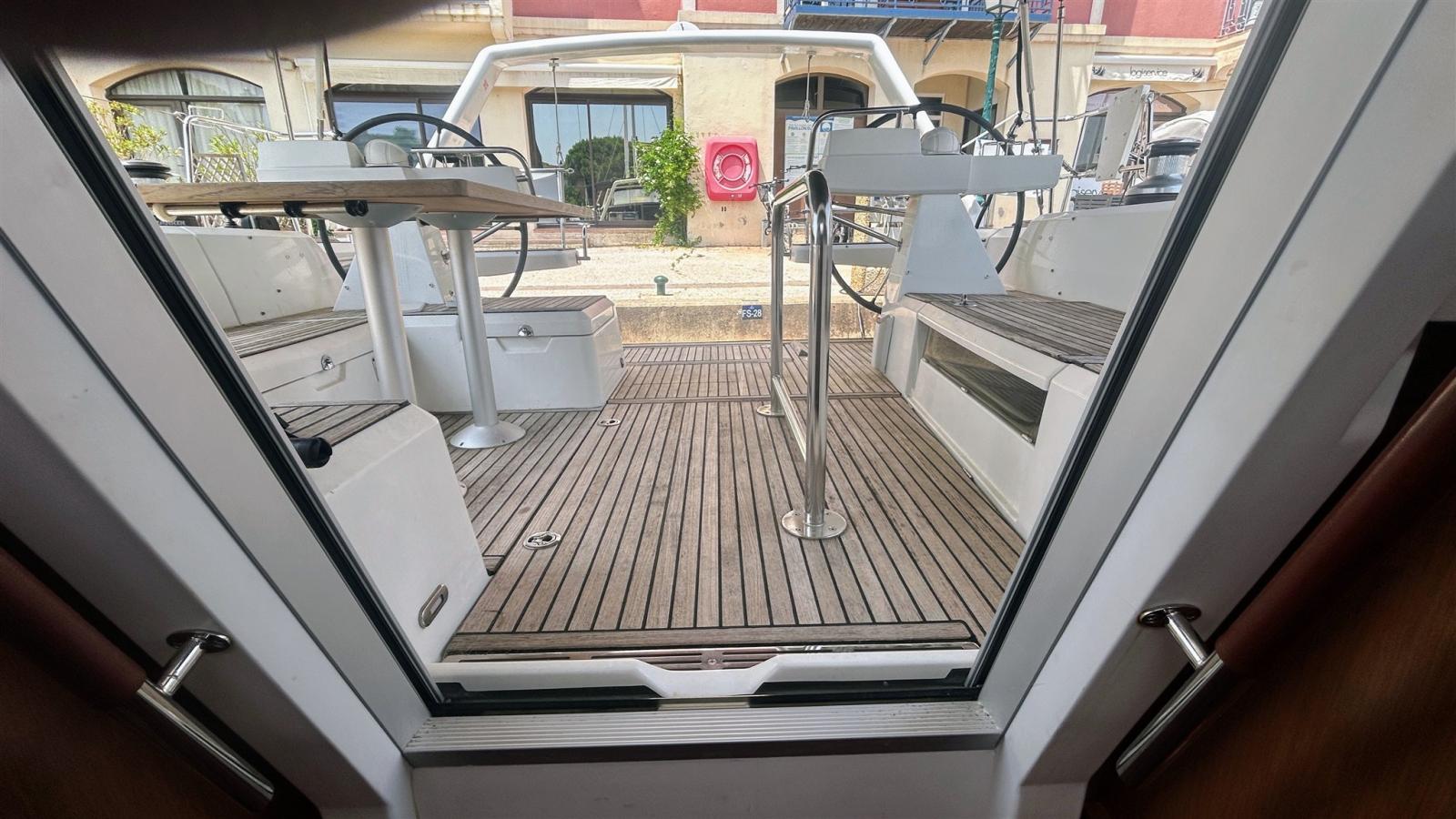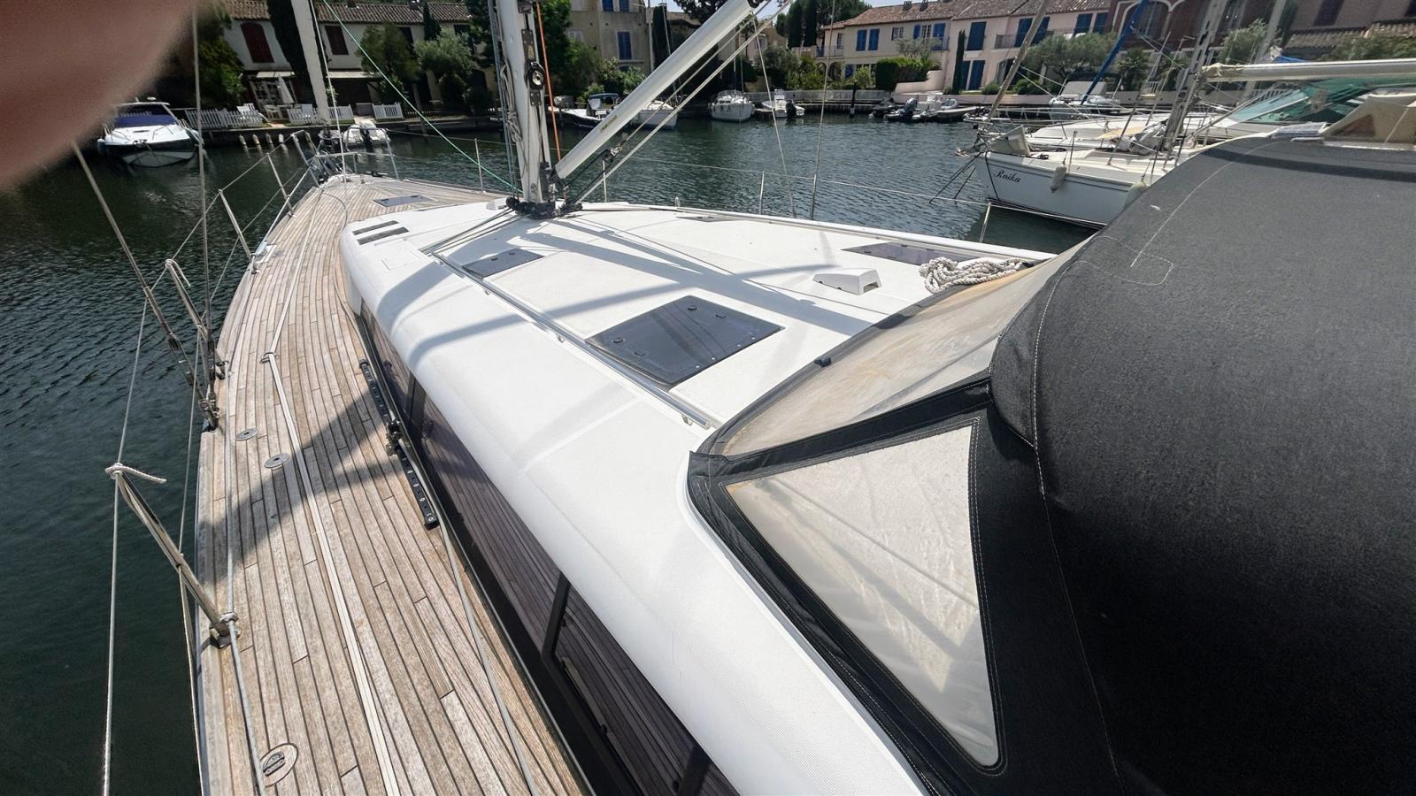 Alarme moteur, Eau sous pression, 4 Batteries (180 amp x 4), Passavant en teck, Chargeur de batterie (49 amp Cristec), Douche de cockpit, Double barre à roue, Propulseur d'étrave (Quick), Bossoirs pour annexe (Sur arceau arrière), Éclairage de courtoisie, Moteur d'annexe (5 cv SUZUKI), Plateforme arrière, Pompe de cale automatique, Pompe de cale manuelle, Pompe à Eau de Mer, Cockpit en teck, Prise de quai, Rollbar, Guindeau électrique (Lewmar), Gréement monotoron, Echelle de bain, Chaise support HB, table de cockpit, Table pliante de salon (Hydraulique), Annexe (3d tender superlight 250 de 2025), 2 Filières avec sortie latèrale, Pont en teck, 3 Winch, Windex.