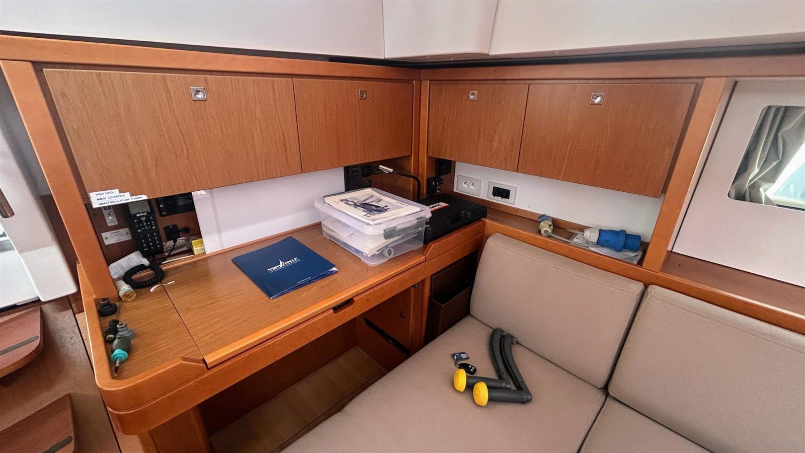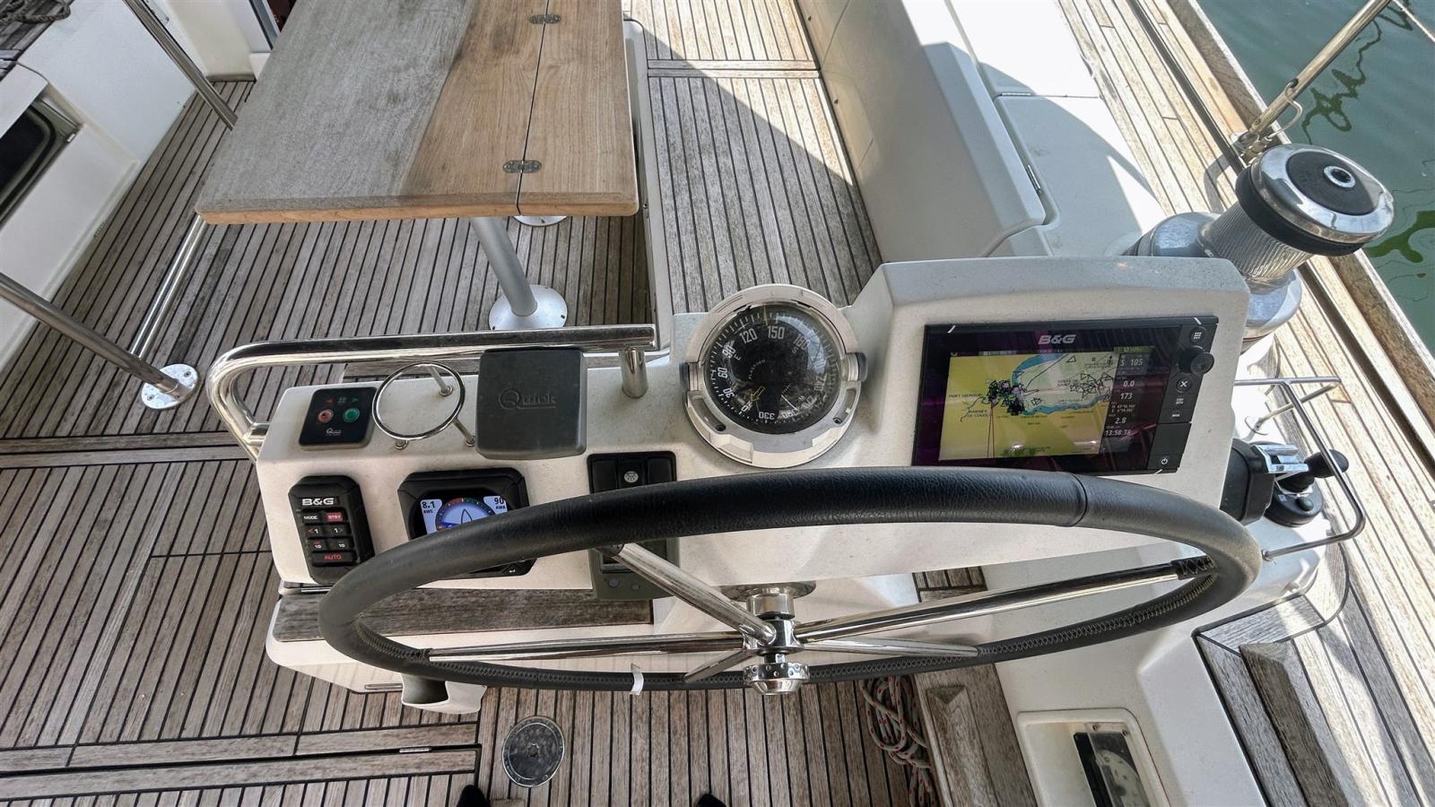 AIS, Indicateur d'angle de barre, 2 Compas, Compteur de chaîne (Quick), DSC VHF (B&G H90), Pilote automatique (B&G), Plotter GPS (B&G), Sondeur, Instruments de mesure pour moteurs.