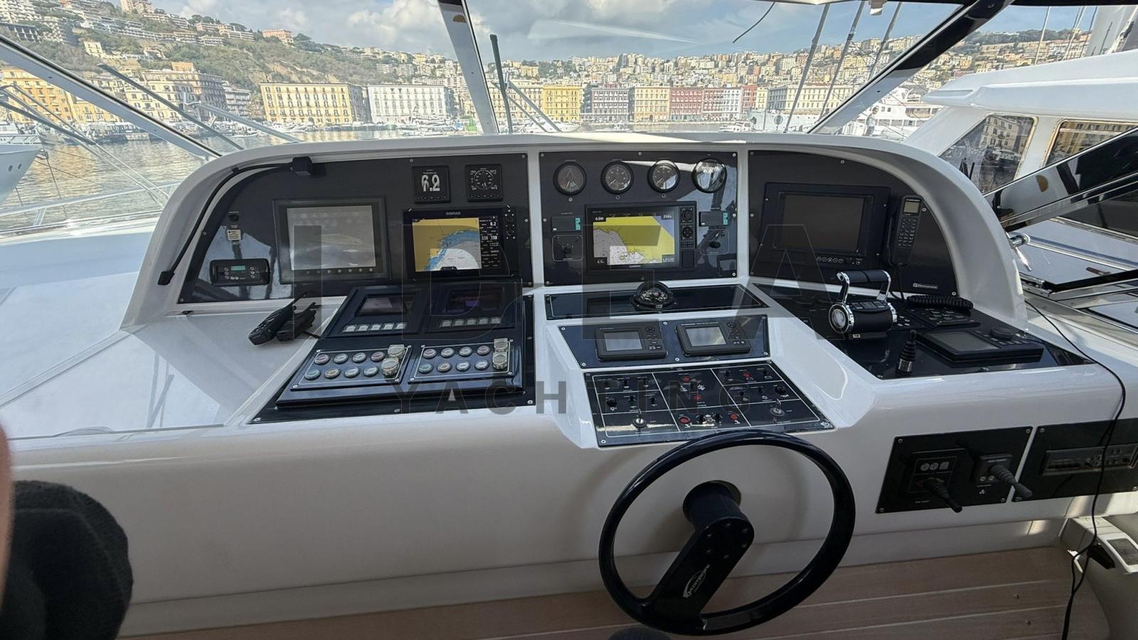 Antenne radar, Commande électrique (MTU), Sondeur pêche (Garmin), GPS (Garmin), Pilote automatique (Simrad), Plotter GPS (Garmin), Radio VHF (Furuno), Anémomètre/Girouette (Garmin).