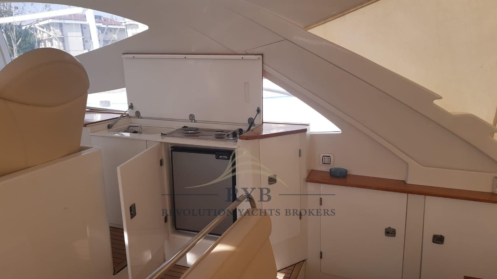 Alarme moteur, Alarme de pompe de cale, Eau sous pression, Batteries (MOTORI 2025, SERVIZI 2022), Passavant en teck (2024), Couleur spéciale, Douche de cockpit, Flaps hydrauliques, Hard top (DOPPIA APERTURA), Lavabo dans le cockpit, Passerelle (TELESCOPICA A SCOMPARSA), Plateforme arrière (TEAK), Pompe de cale automatique, Cockpit en teck, Prise de quai, Guindeau électrique, Echelle de bain, table de cockpit.
