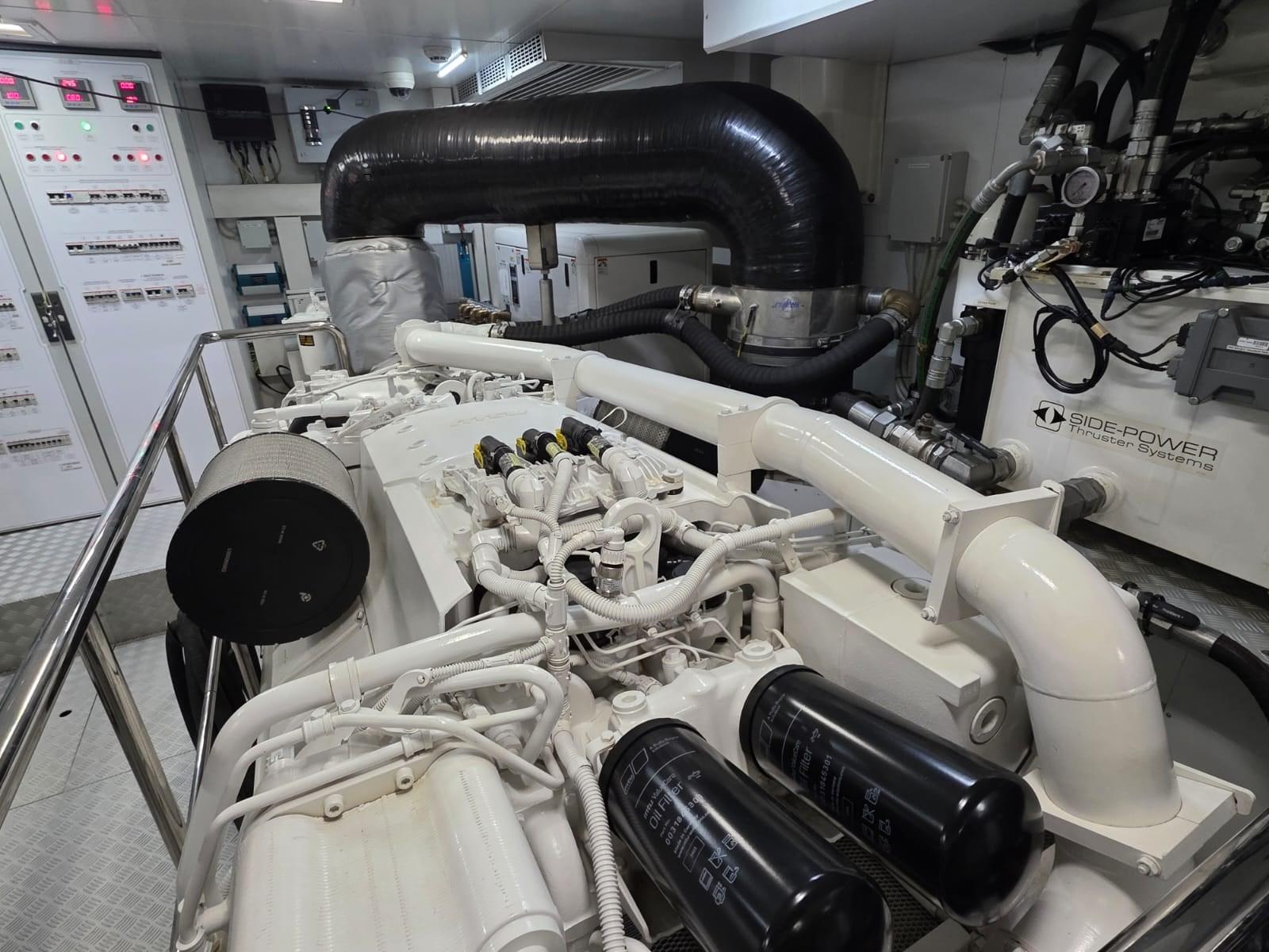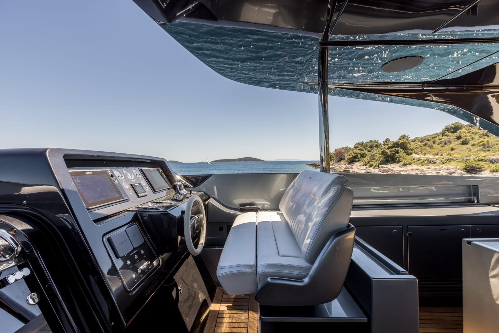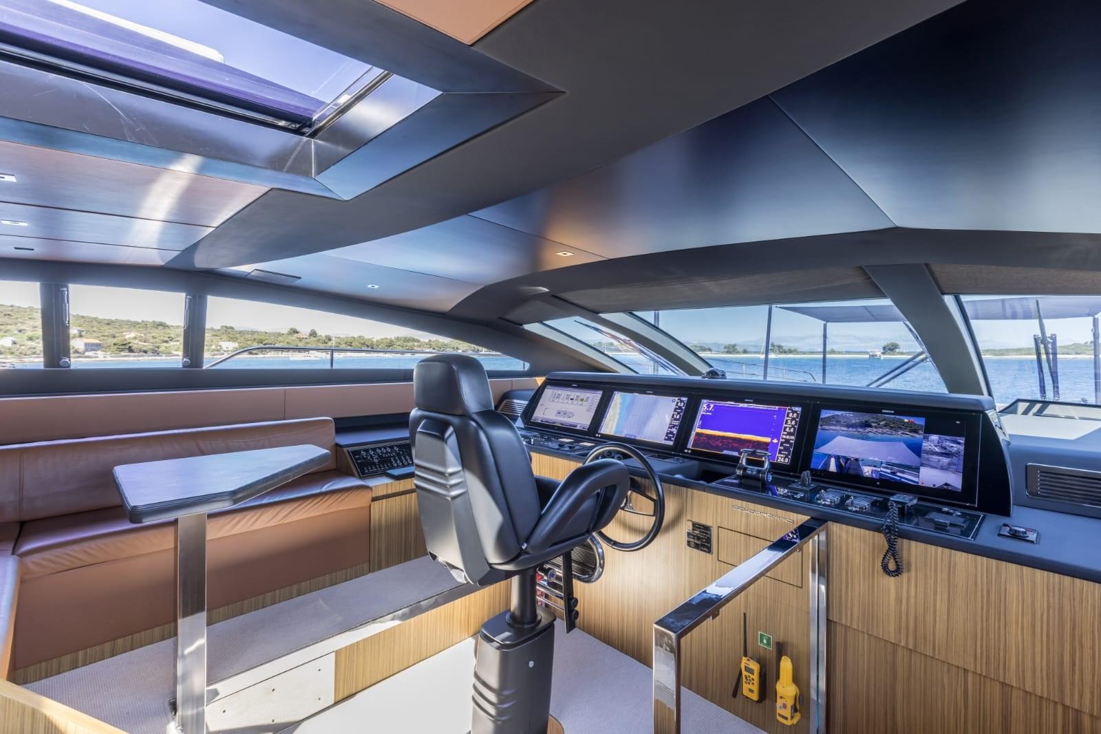 Alarme gaz, Alarme moteur, Alarme de pompe de cale, Auto Dynamic Trim Interceptor, Passavant en teck, Câble d’alimentation à quai, Hard top, Extincteur(s) fixe(s), Lavage de chaine, Éclairage de courtoisie, Spots sous-marins, Jet-ski, Passerelle, Pont en teck, Porte latérale, Cockpit en teck, Guindeau électrique, Echelle de bain, Stabilisateurs, table de cockpit, Pont en teck, Winch électrique arrière.