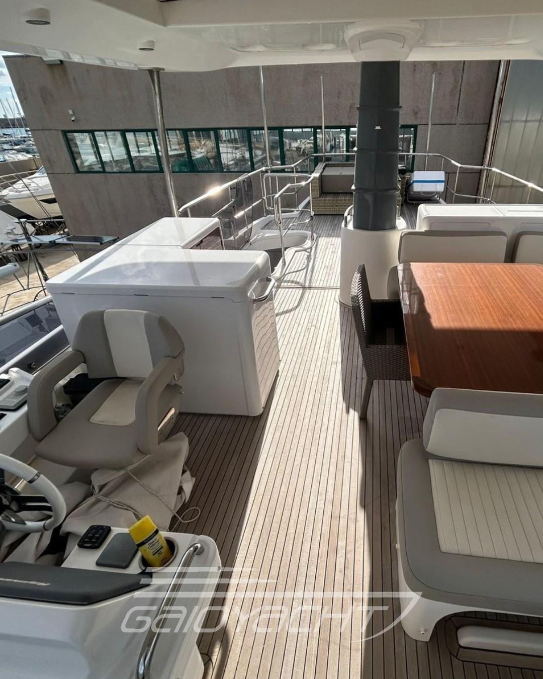Amarrage facile ; Système de fixation facile ; Allumage du moteur ; Affichage de la commande du moteur ; Commande des volets de trim ; Caméra thermique ; Dessalinisateur ; N. 2 refroidisseur à vin ; Téléviseur; projecteurs N2 sur le flybridge ; Silestone sur les comptoirs (cuisine et salles de bains).