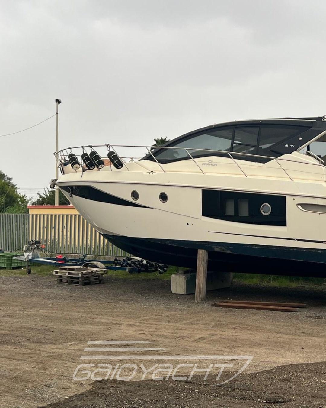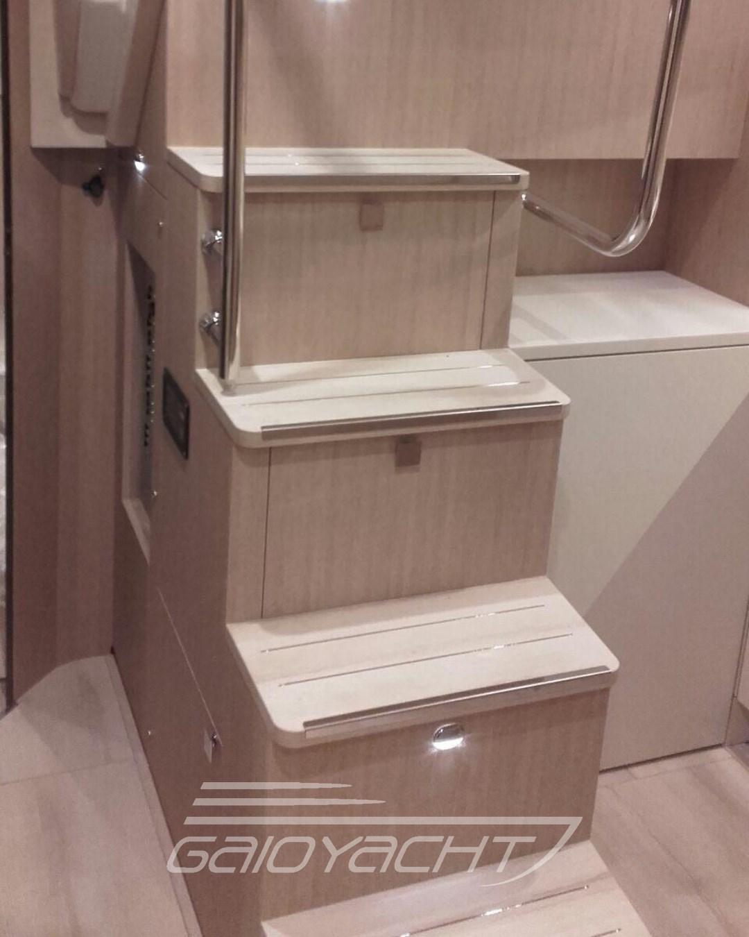 Ancre (Inox), Ouverture du compartiment moteur électrique, Passavant en teck (Solo plancetta), Douche de cockpit, Garage à annexe, Hard top, Lavabo dans le cockpit, Éclairage de courtoisie, Passerelle (Idraulica a scomparsa), Prise de quai, Connexion eau sous pression à quai, Guindeau électrique, table de cockpit, Table pliante de salon, Winch électrique avant.