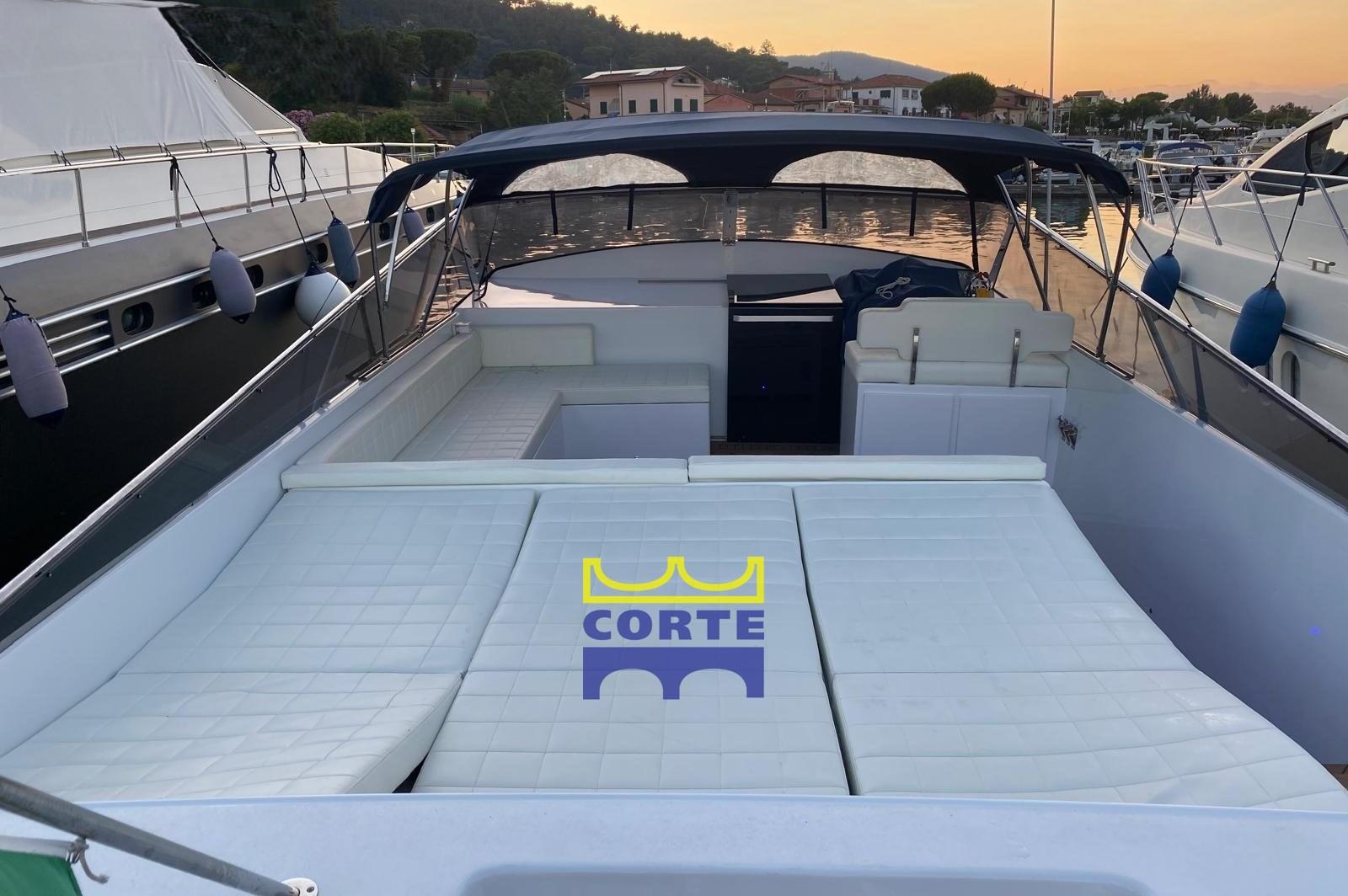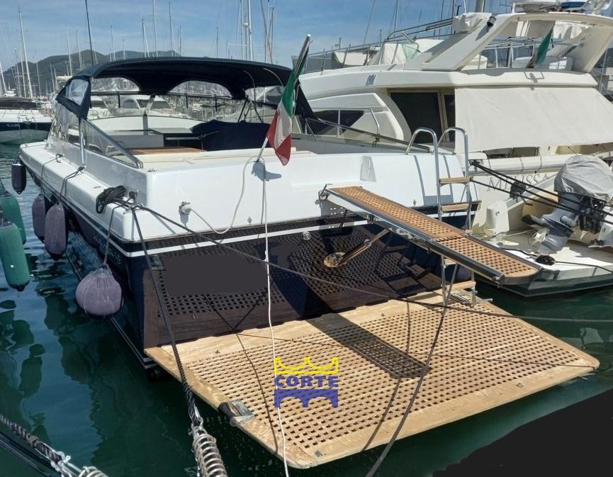 Eau sous pression, Batteries (2024), Douche de cockpit, Bossoirs pour annexe (passerella), Passerelle, Plateforme arrière (poppa carabottino in teak), Pompe de cale automatique, Porte latérale, Prise de quai, Echelle de bain, table de cockpit.
