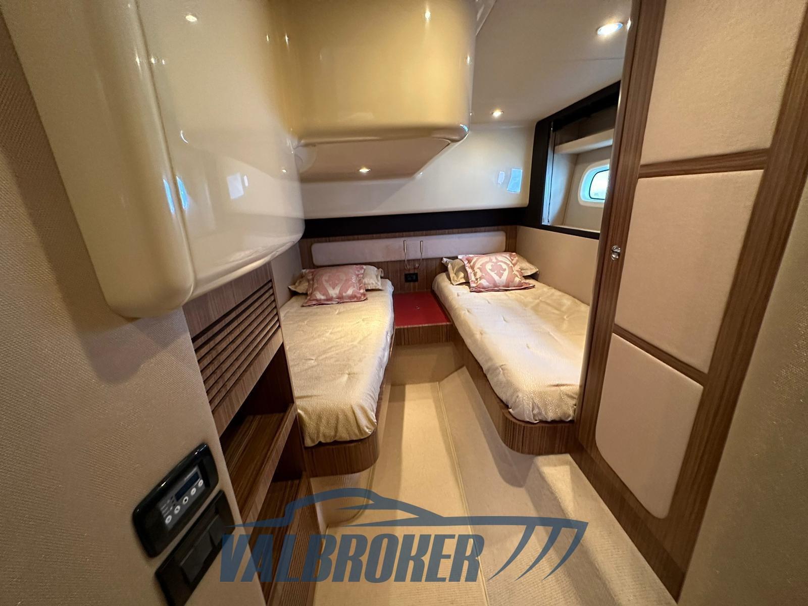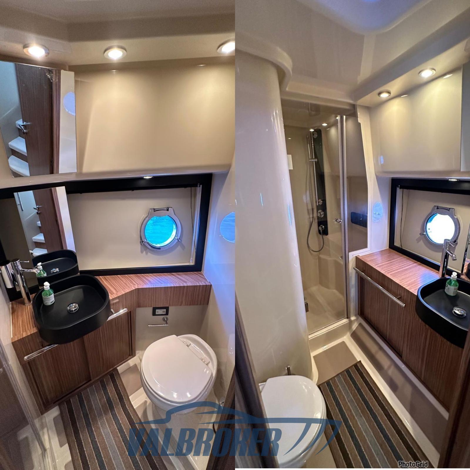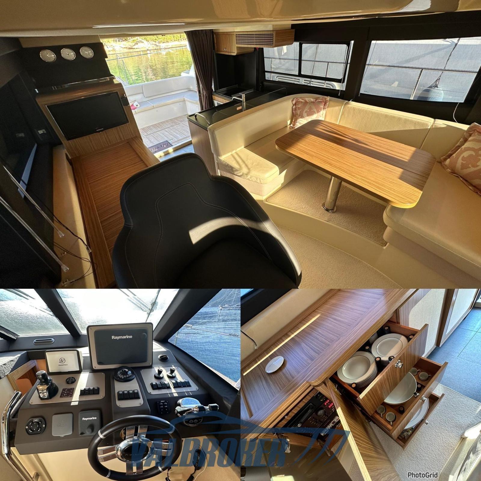 Eau sous pression, Douche de cockpit, Double barre à roue, Phare de poursuite, Flaps hydrauliques, Indicateurs de flaps (Bennett), Spots sous-marins, Passerelle, Pompe de cale automatique, Porte latérale, Cockpit en teck, Prise de quai, Connexion eau sous pression à quai, Rollbar, Guindeau électrique, Echelle de bain, Selles pour Annexe, table de cockpit, Corne.