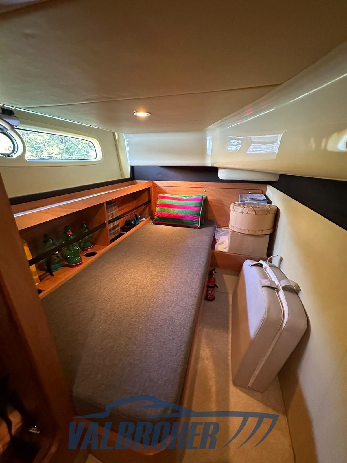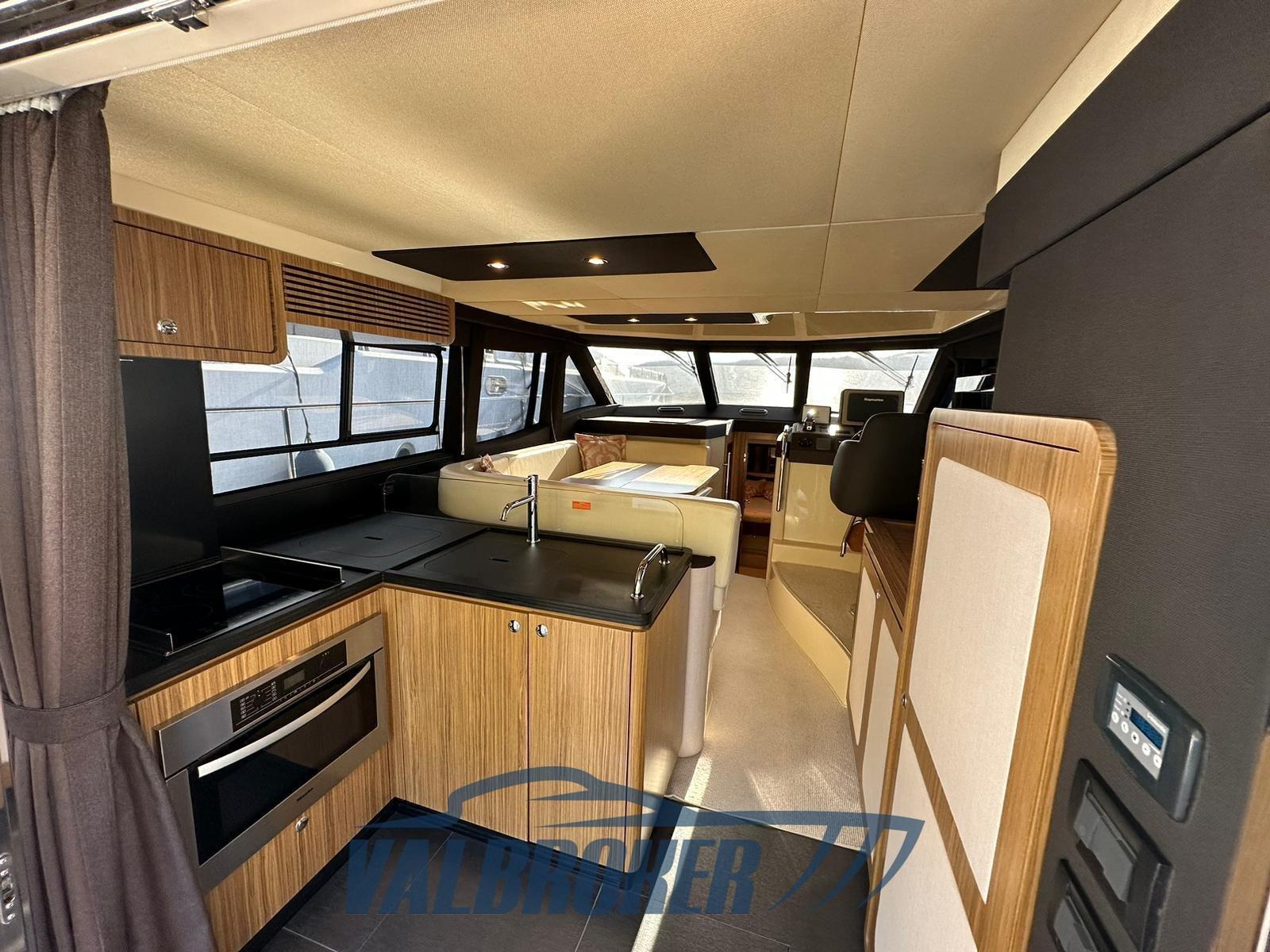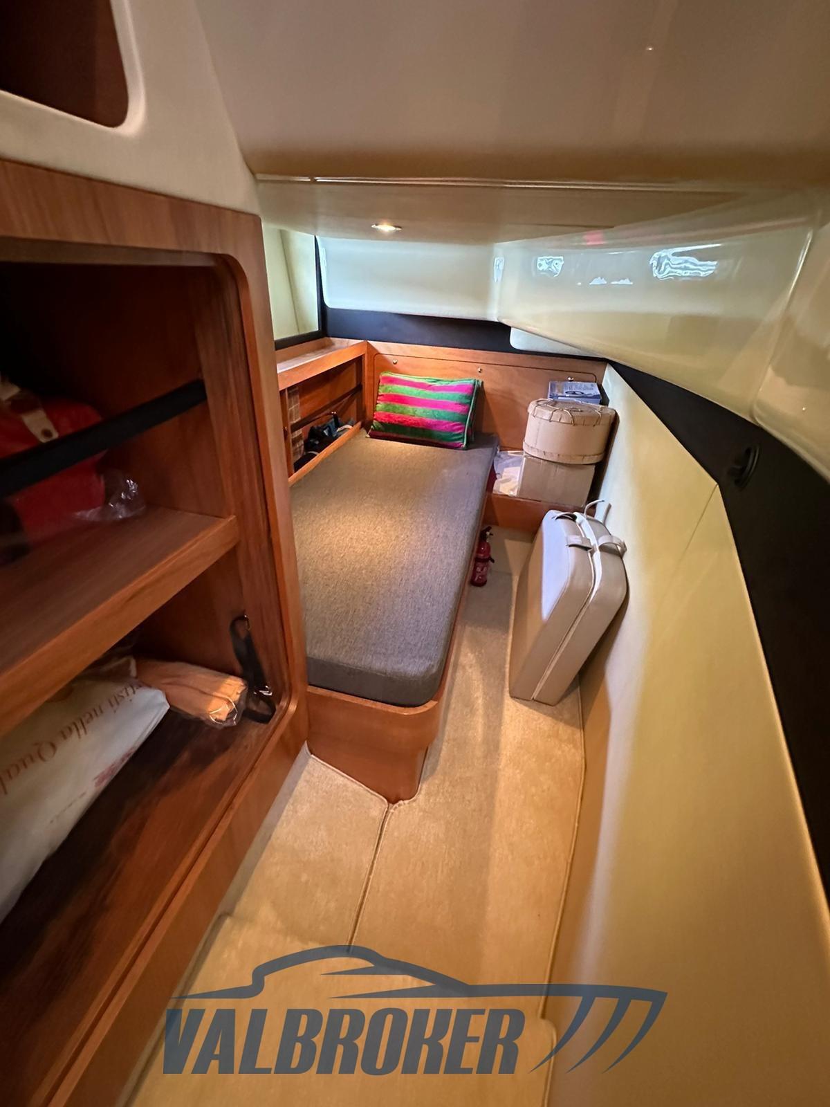 Eau sous pression, Douche de cockpit, Double barre à roue, Phare de poursuite, Flaps hydrauliques, Indicateurs de flaps (Bennett), Spots sous-marins, Passerelle, Pompe de cale automatique, Porte latérale, Cockpit en teck, Prise de quai, Connexion eau sous pression à quai, Rollbar, Guindeau électrique, Echelle de bain, Selles pour Annexe, table de cockpit, Corne.