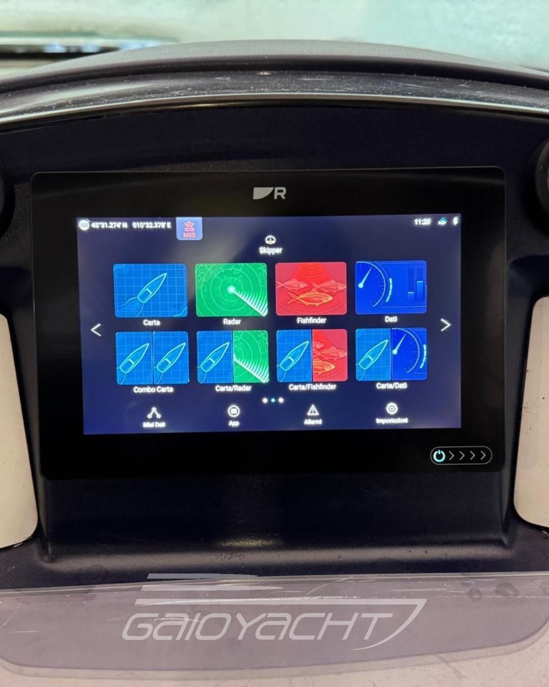 Compas (Magnetica), Ordinateur fixe de bord, Compteur de chaîne (Digitale Quik (ultimo modello nel 2023)), Moniteur (Tridata Raymarine), Sondeur pêche (Raymarine), GPS (Raymarine), Pilote automatique (Raymarine), Lecteur de cartes (Raymarine (Axiom) touch screen nel 2022), Plotter GPS.