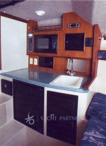 Équipé d’une instrumentation Garmin complète : écran 16 » et 12 », pilote automatique, radar de 48 miles, Kraken 220/48V. Volets électroniques, vannes de pêche à la traîne, ordinateurs Volvo Penta. Système électrique 220V, onduleur, chargeur de batterie.