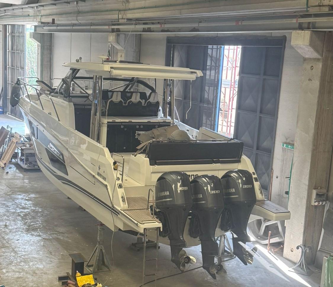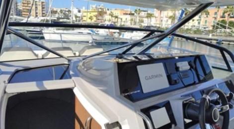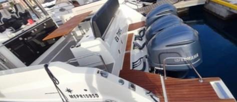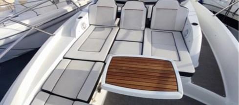 Alarme moteur, Auto Dynamic Trim Interceptor, Eau sous pression, Trim hydraulique, Passavant en teck, Douche de cockpit, Flaps électriques, Hard top, Indicateurs de flaps, Lavabo dans le cockpit, Éclairage de courtoisie, Spots sous-marins, Plateforme arrière, Porte latérale, Cockpit en teck, Guindeau électrique, table de cockpit, Corne.