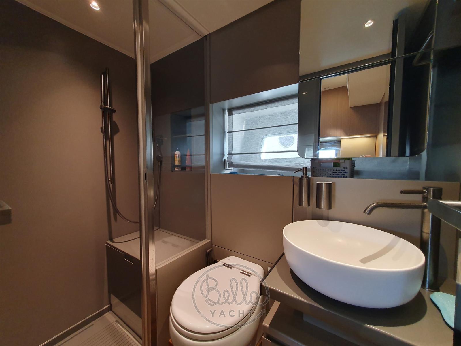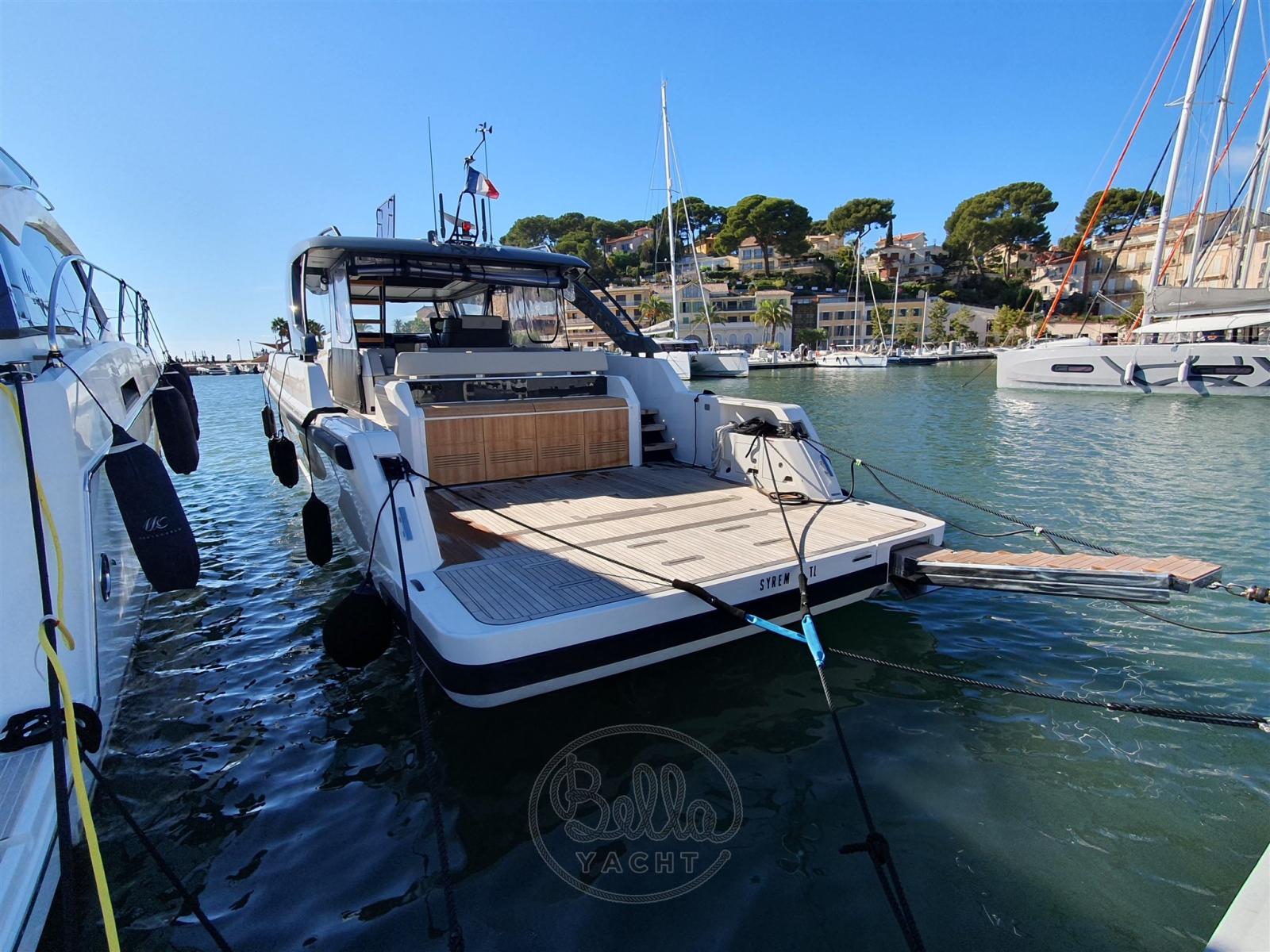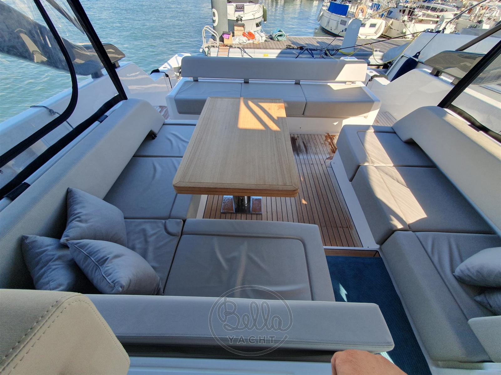 Alarme moteur, Alarme de pompe de cale, Ancre (30kg Bruce type with bow roller and 75m galvanized chain (10mm)), Auto Dynamic Trim Interceptor (Volvo Penta), Eau sous pression, 2 Taquets pliants (mid ship and 4 fixed cleats), Système de vidange, Passavant en teck, Couleur spéciale, Douche de cockpit, 4 Phares fixes arrière (2 aft & 2 fwd), Phare de poursuite, Extincteur(s) fixe(s), Indicateurs de flaps, Éclairage de courtoisie, Spots sous-marins, Passerelle, Plateforme arrière, 4 Pompe de cale automatique, 2 Pompe de cale manuelle, Porte latérale, Cockpit en teck, Prise de quai (63A with 25m cable), Connexion eau sous pression à quai, Guindeau électrique (1700W), Echelle de bain, Stabilisateurs (Seakeeper), table de cockpit, Corne, Pont en teck, 2 Winch électrique arrière (one STD and one optional).
