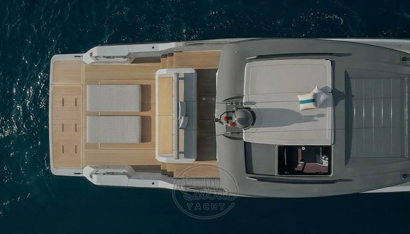 La large plage arrière intègre une véritable cuisine d’été, parfaite pour savourer les moments de détente à bord.