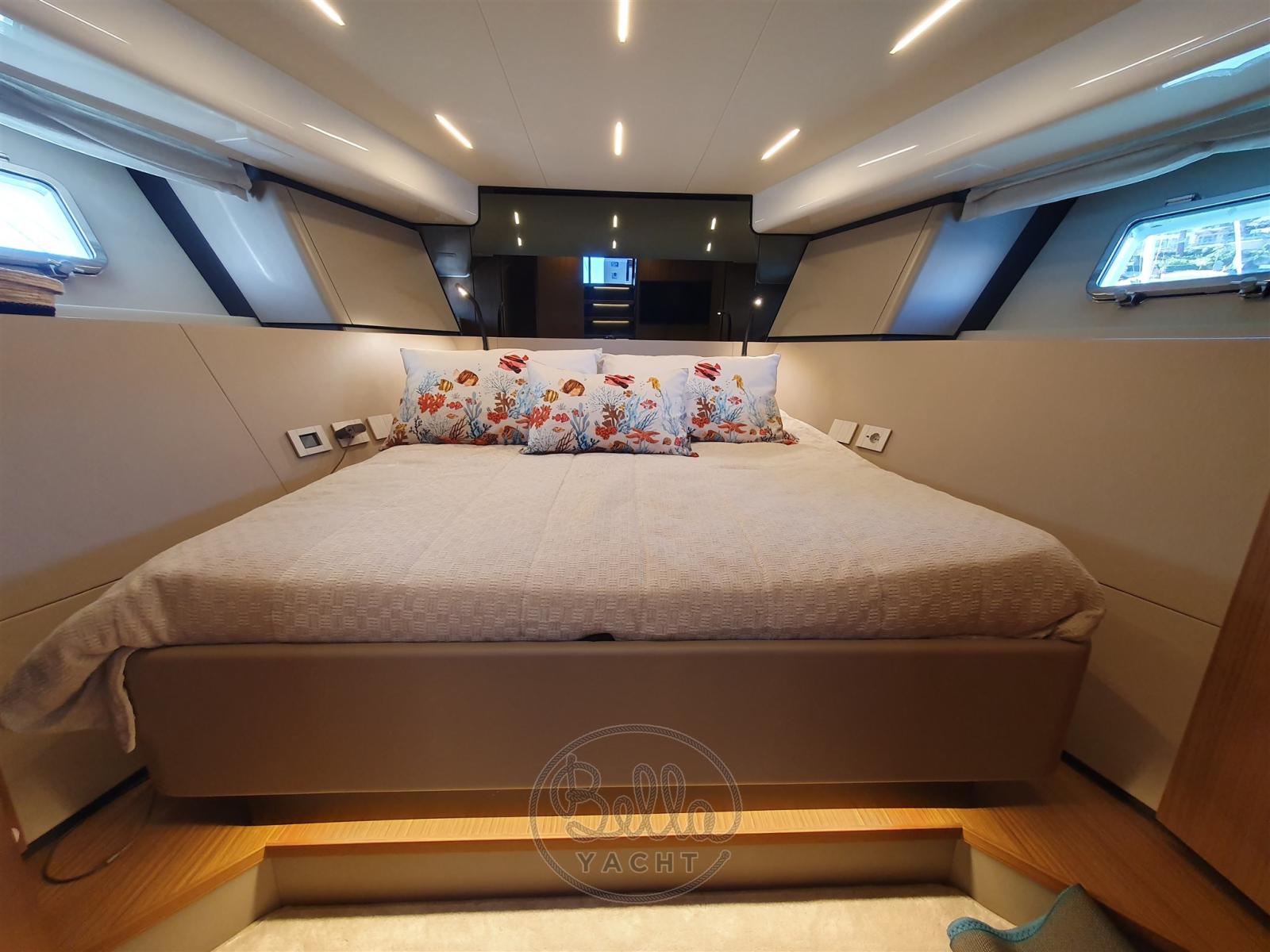 Très bien équipé, il offre 2 cabines ensuite, une cabine équipage, et peut accueillir jusqu’à 14 invités en journée grâce à sa configuration walkaround spacieuse et conviviale.
