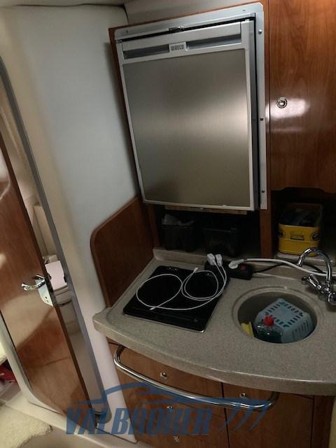 Bateau sans plaques d’immatriculation, construit par le chantier américain en 2008. Propulsé par 2xVolvo Penta 5.0 L’entretien du moteur a été effectué en mars 2025. Accès pratique à la proue par l’ouverture centrale du pare-brise. 4 lits confortables, 1 lit double à l’avant et un second au milieu du bateau sous le cockpit. Salle de bain séparée. Avril 2025 : polissage, antifouling et préparation de la saison. Les reprises sont évaluées.