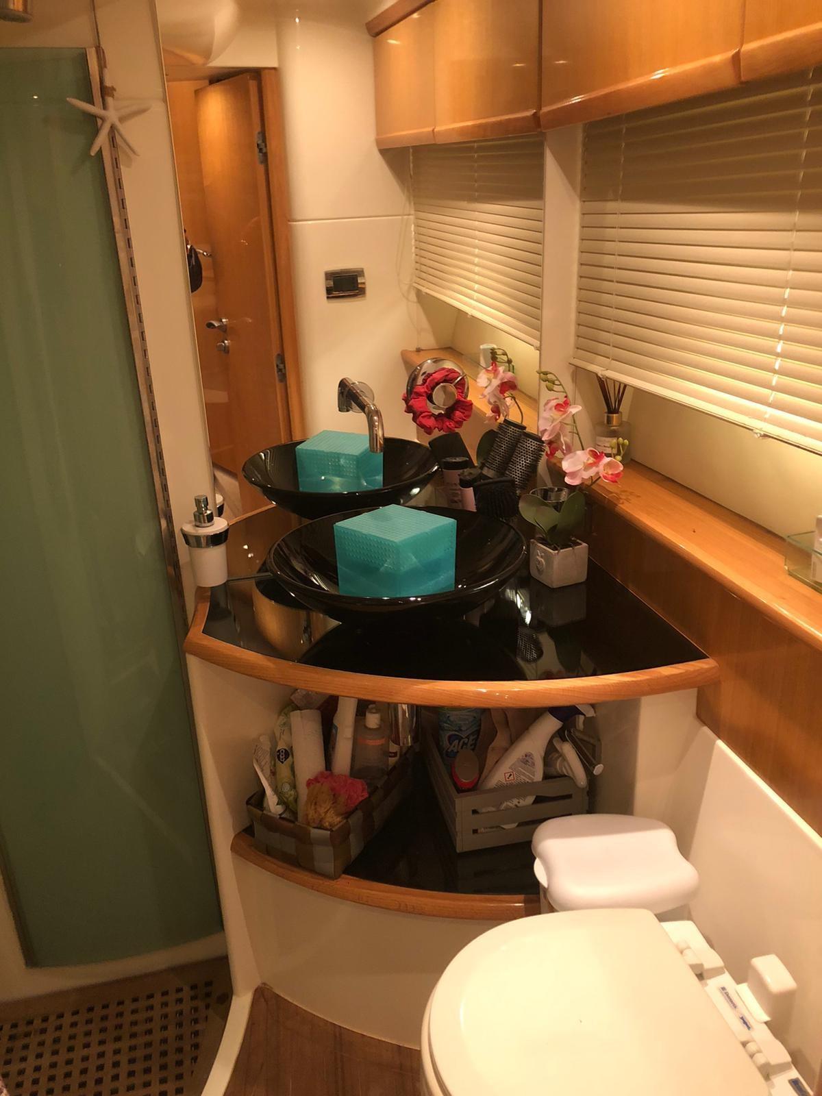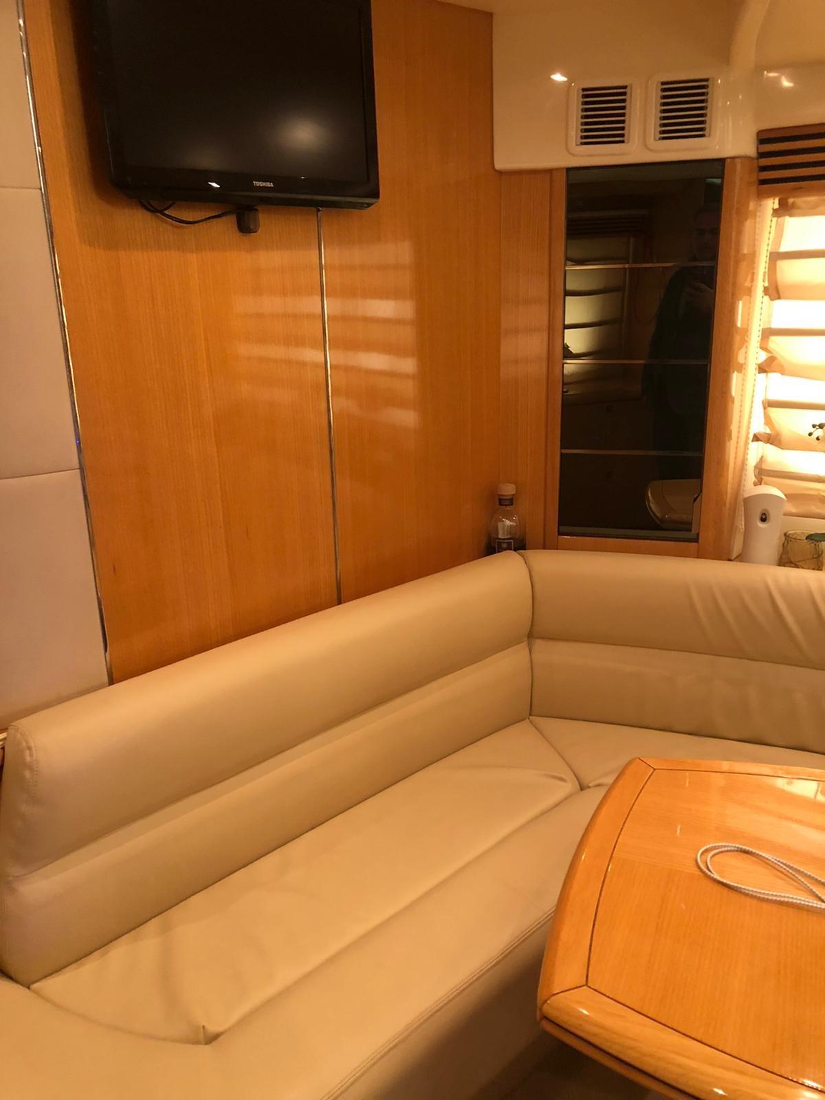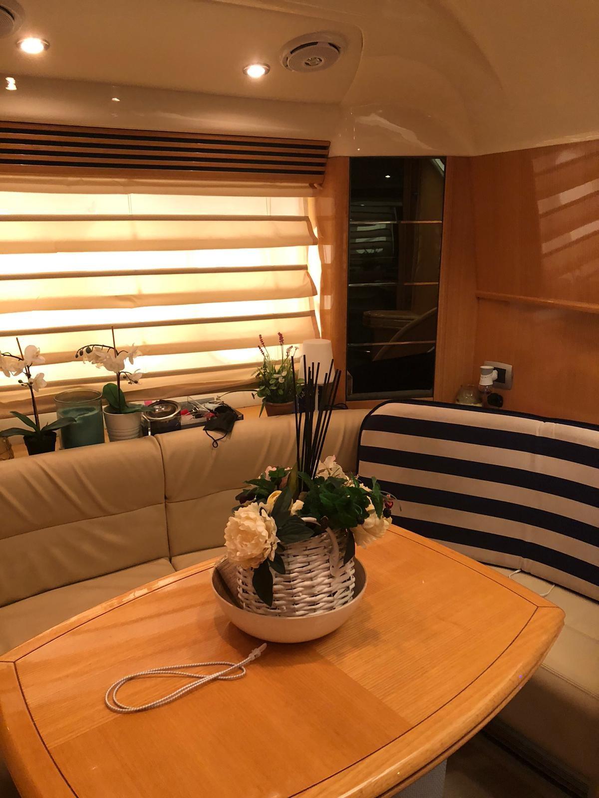 Alarme moteur, Alarme de pompe de cale, Eau sous pression, Douche de cockpit, Flaps hydrauliques, Garage à annexe, Hard top, Extincteur(s) fixe(s), Passerelle, Plateforme arrière, Pompe de cale automatique, Pompe de cale manuelle, Cockpit en teck, Prise de quai, Onduleur, Guindeau électrique, Echelle de bain, table de cockpit, Annexe, Corne, Winch électrique avant.