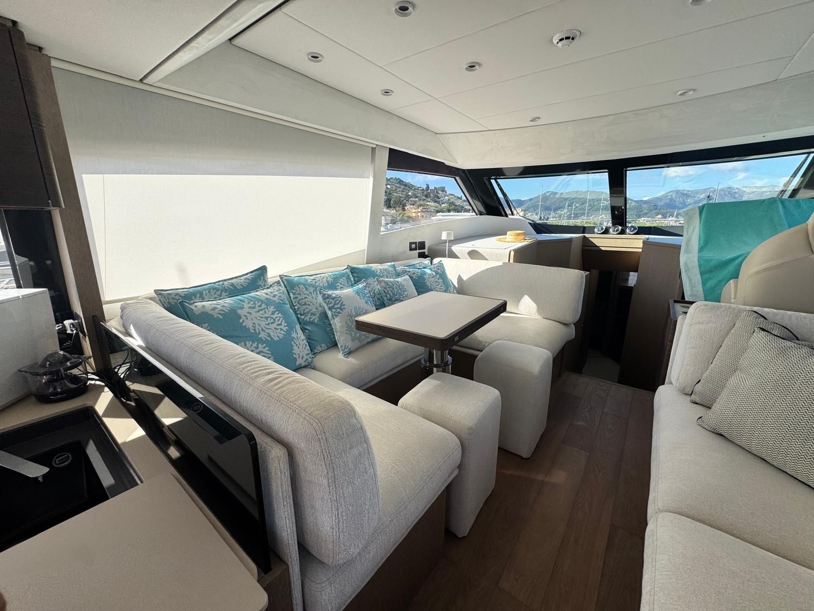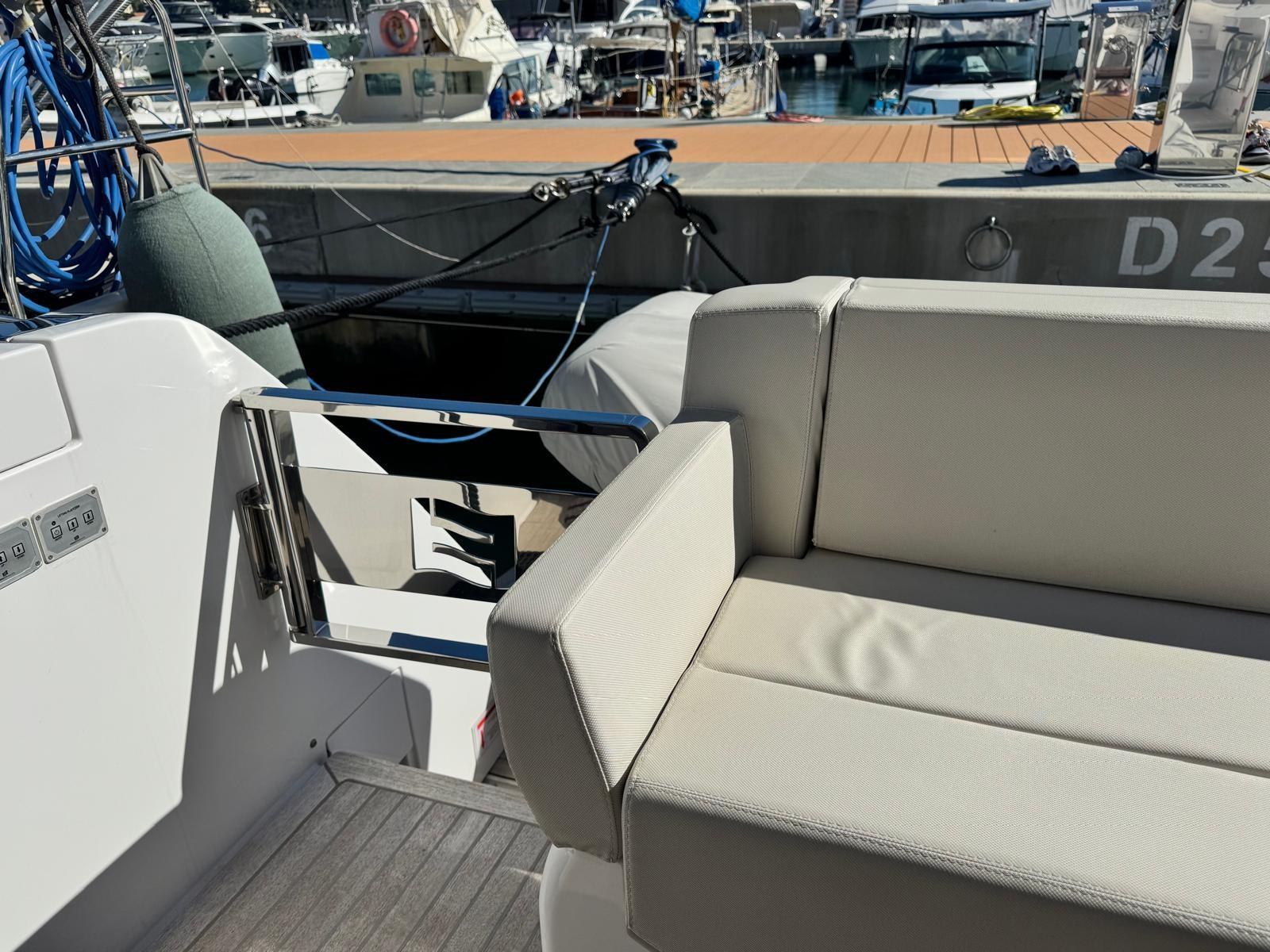 Sellerie complète, Coussins arrieres, Coussin avant, Sellerie de fly, Matelas, Taud de fly, Taud électrique (Nel pozzetto), Rideaux.