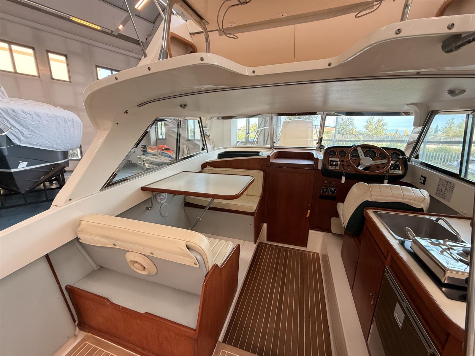 Eau sous pression, Câble d’alimentation à quai, Douche de cockpit, Flaps électriques, Flaps hydrauliques, Hard top, Éclairage de courtoisie, Plateforme arrière, Pompe de cale automatique, Cockpit en teck, Prise de quai, Guindeau électrique, Echelle de bain, Corne.