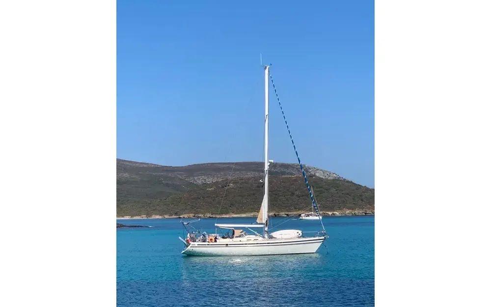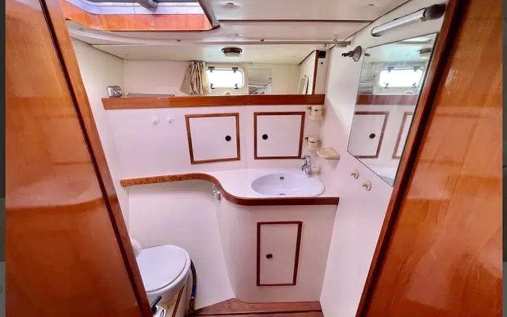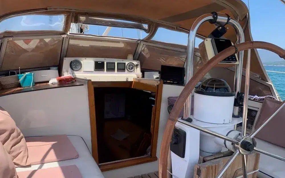 Construction robuste, alliant confort a la barre et vie à bord, il a été équipé pour un équipage réduit (et meme solo), toutes les commandes reprises au cockpit central, enrouleur de Grand Voile et de Génois à commande hydraulique Reckmann, winchs électriques, entièrement équipé pour la croisière et en autonomie au mouillage.