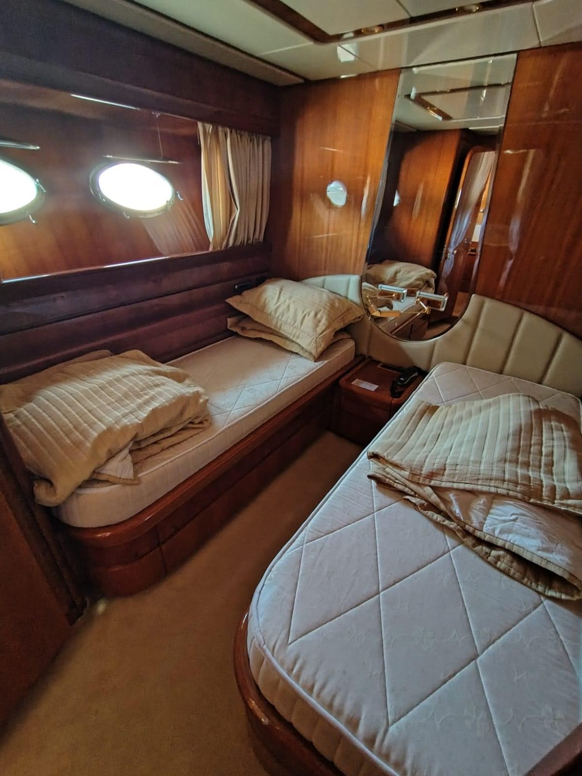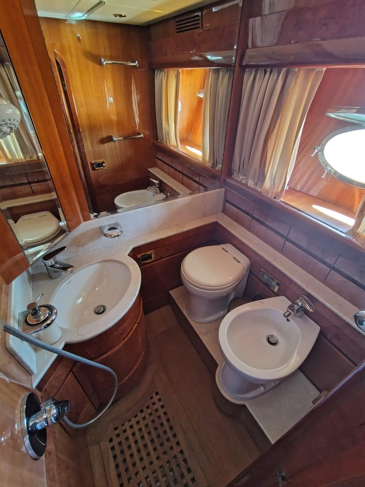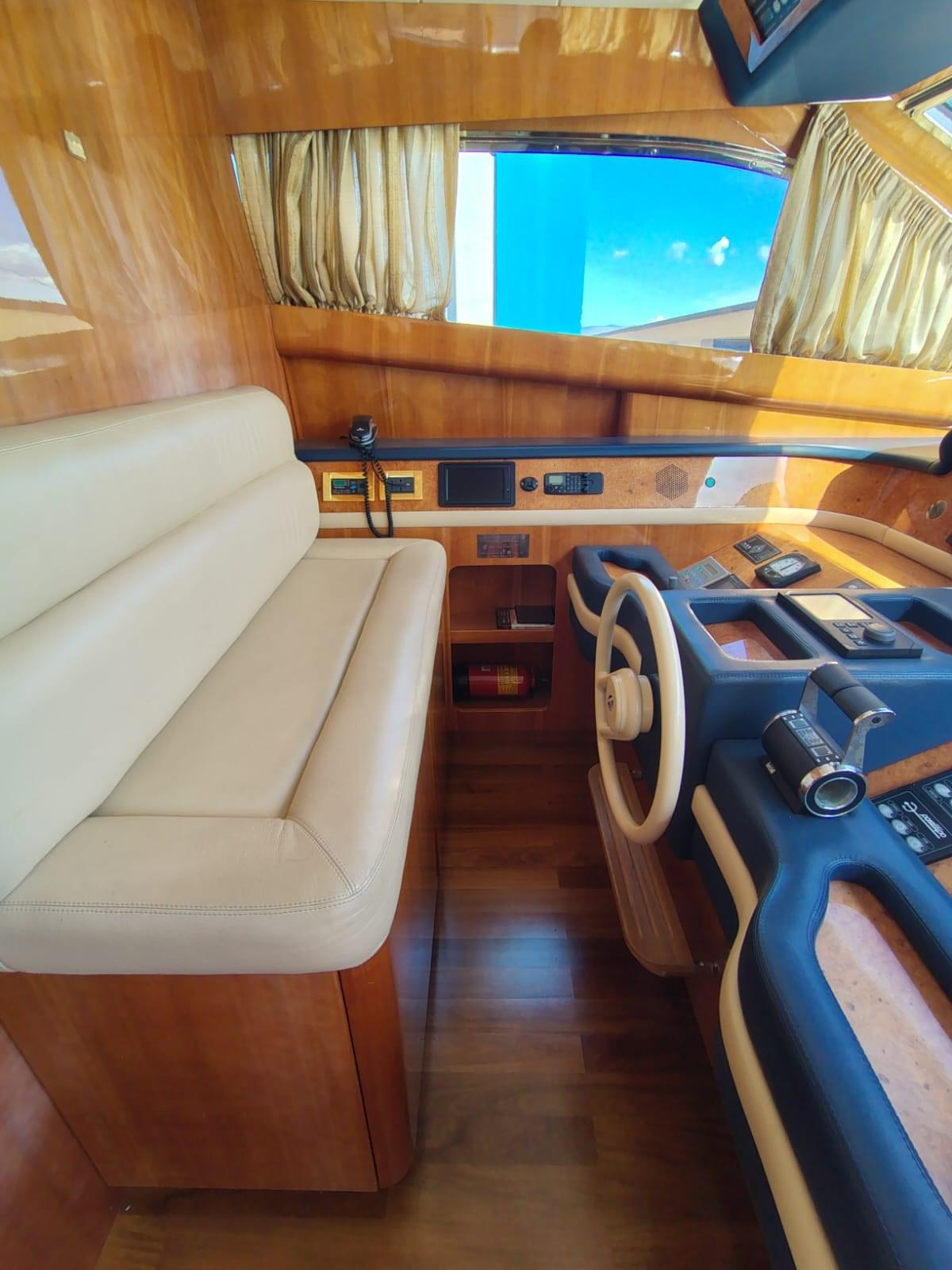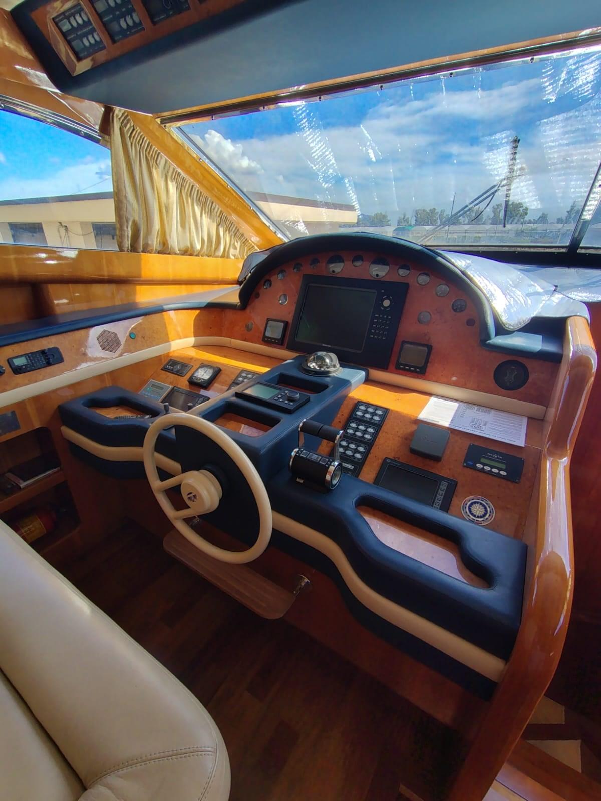 Alarme gaz, Alarme moteur, Alarme de pompe de cale, Alternateur, Ouverture du compartiment moteur électrique, Ligne d'arbre de rechange, Eau sous pression, 10 Batteries, Passavant en teck, 3 Chargeur de batterie, Douche de cockpit, Double barre à roue, Hélice de rechange, Phare de poursuite, Flaps hydrauliques (N°2), Extincteur(s) fixe(s), Indicateurs de flaps, Lavage de chaine, Lavabo dans le cockpit, Éclairage de courtoisie, Spots sous-marins, Moniteur de batterie, Défenses, Passerelle, Plateforme arrière, Pompe de Vidange du Réservoir d’Eaux Usées, Pompe de cale automatique, Pompe de cale manuelle, Pompe de Lavage du Pont, Pompe à Eau de Mer, Pont en teck, Porte latérale, Cockpit en teck, Prise de quai, Connexion eau sous pression à quai, Répétiteur électronique, Rollbar, Guindeau électrique, Echelle de bain, Selles pour Annexe, Système de filtration des eaux usées, table de cockpit, Table pliante de salon, Filières avec sortie latèrale, Corne, Winch, Winch électrique arrière, Winch électrique avant.