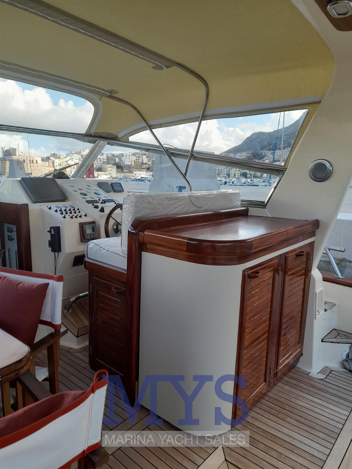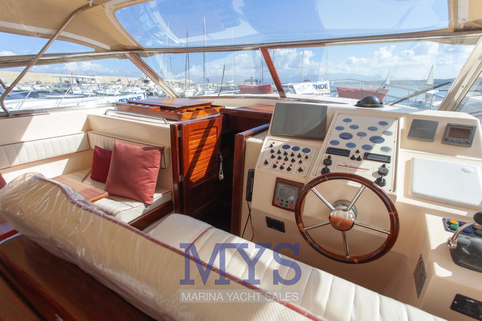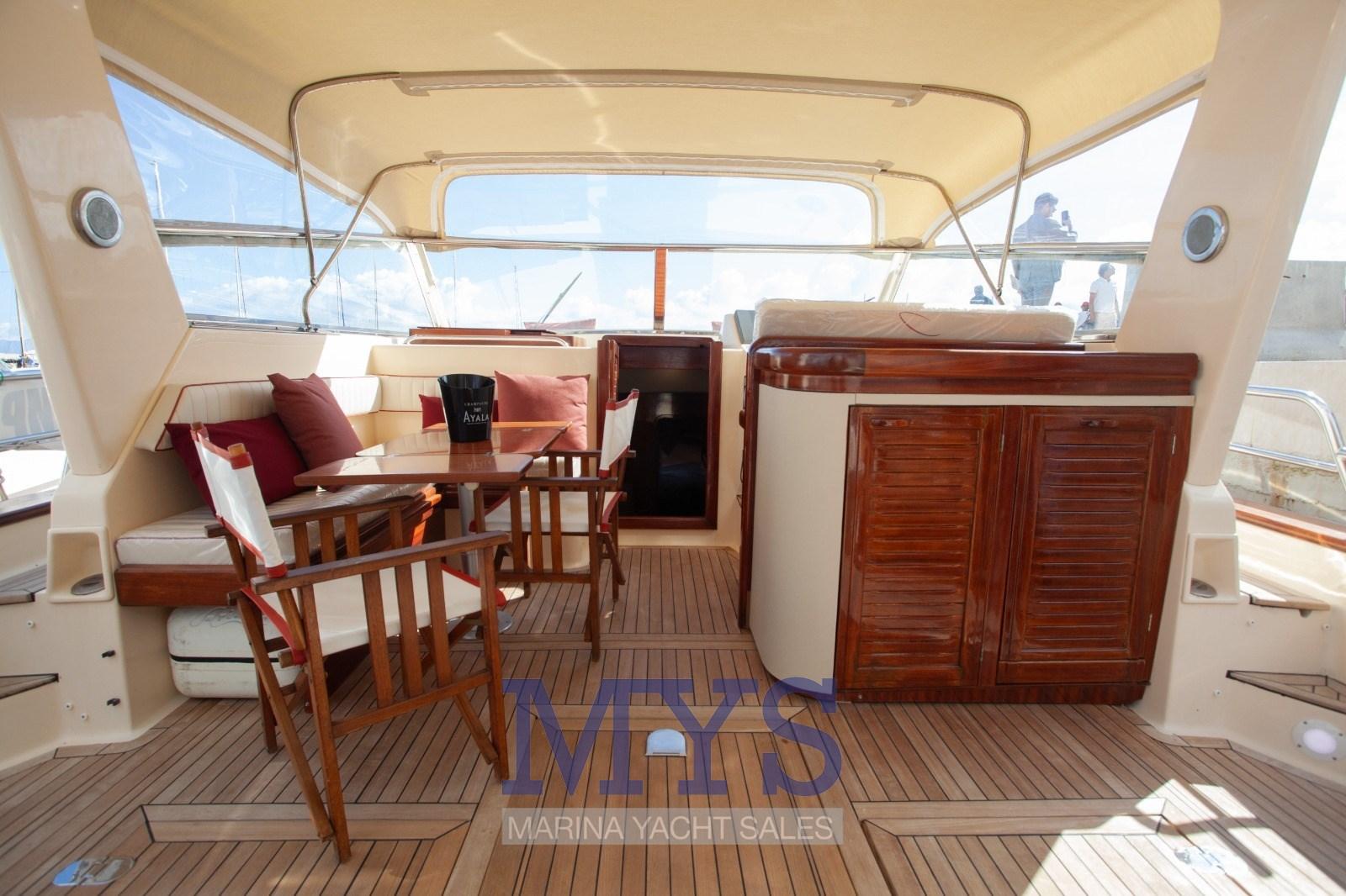 Alarme moteur, Eau sous pression, Passavant en teck, Douche de cockpit, Phare de poursuite, Flaps hydrauliques, Hard top, Extincteur(s) fixe(s), Indicateurs de flaps, Lavage de chaine, Lavabo dans le cockpit, Éclairage de courtoisie, Passerelle, Plateforme arrière, Pompe de cale automatique, Pont en teck, Cockpit en teck, Prise de quai, Connexion eau sous pression à quai, Guindeau électrique, Echelle de bain, table de cockpit, Corne.