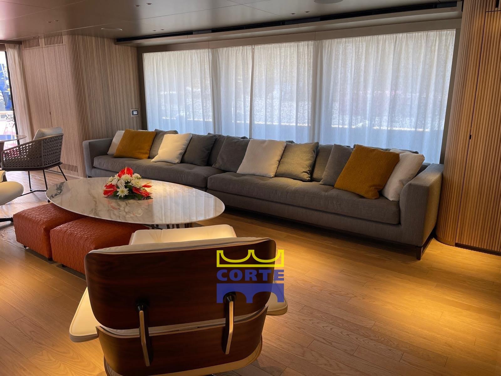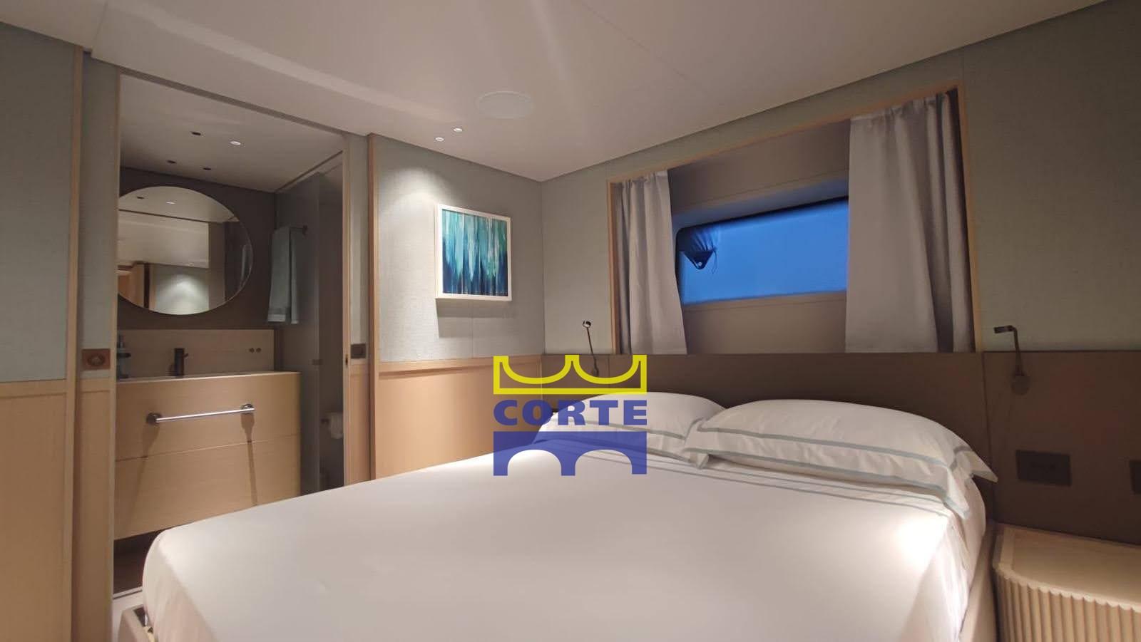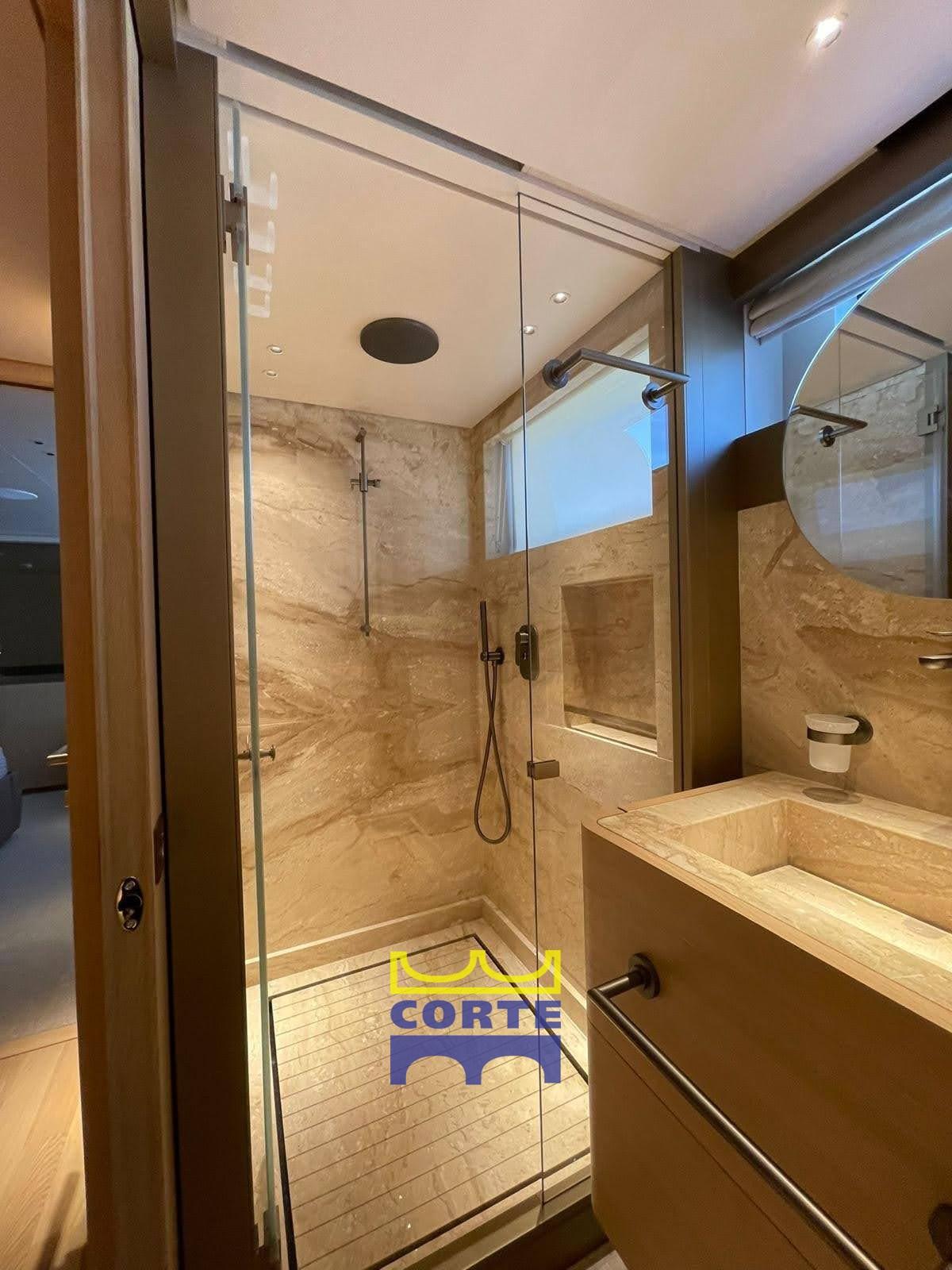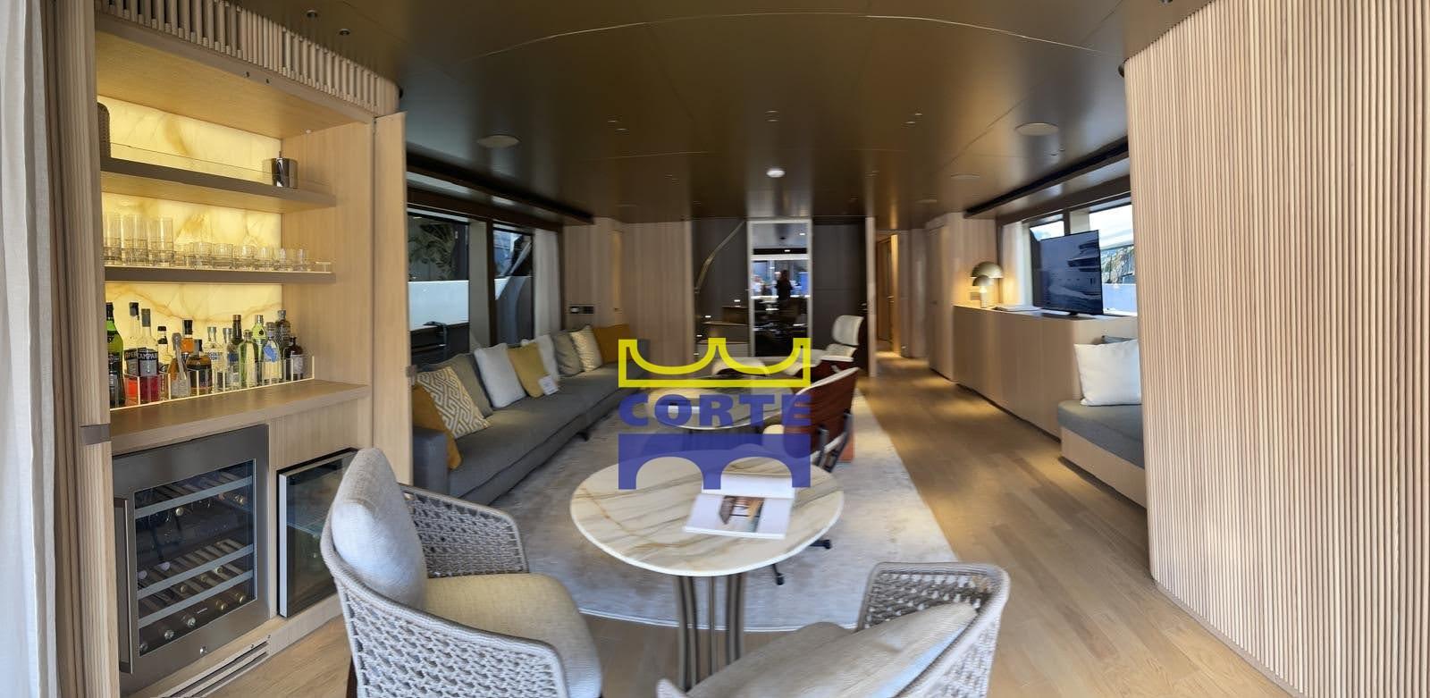 Intérieurs élégants et bien entretenus ; Chêne nervuré dans le salon, revêtement d’escalier en cuir pour les invités, lavabos en marbre. Parois de la douche en marbre et compartiment des toilettes dans la cabine du propriétaire. Les murs de la douche dans les salles de bains sont en marbre.
