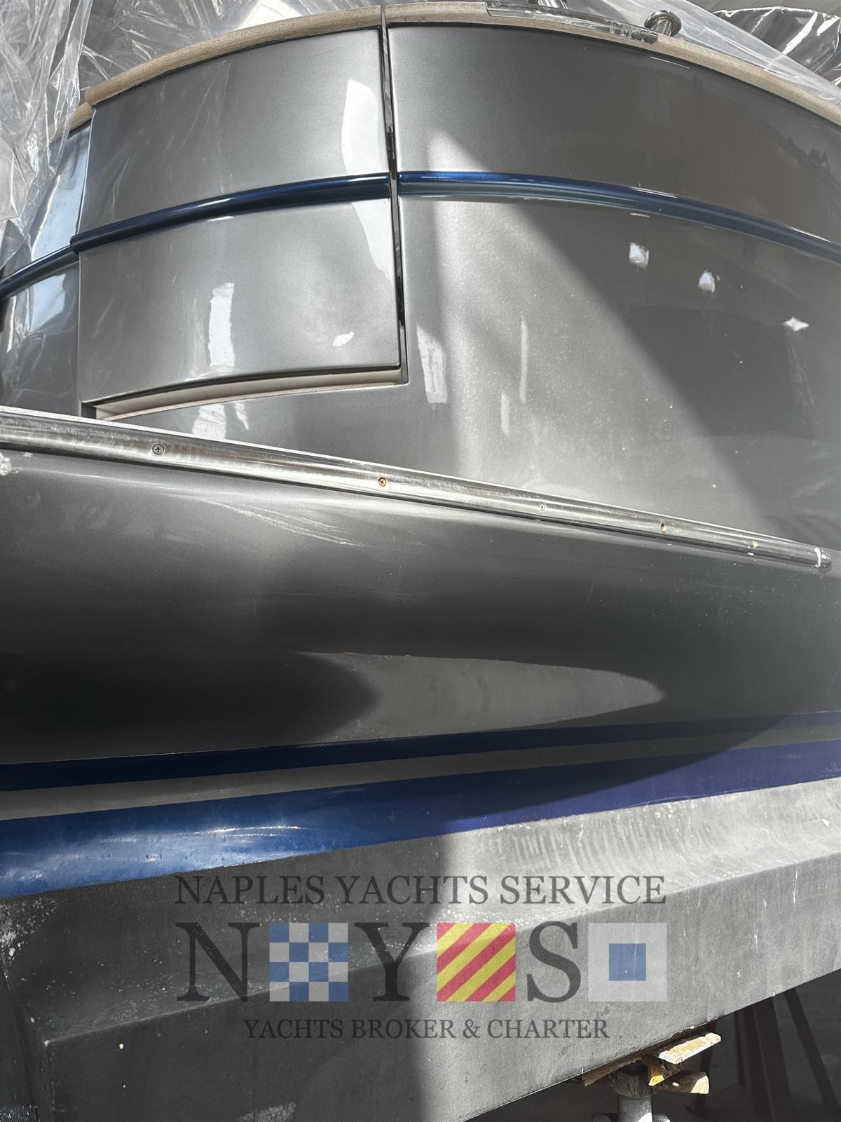 Alarme moteur, Alarme de pompe de cale, Eau sous pression, 4 Batteries, Passavant en teck (FUGA GRIGIA), Flaps hydrauliques (BENNET CON TASTIERA IN PLANCIA), Indicateurs de flaps, Lavabo dans le cockpit, Éclairage de courtoisie, Pompe de cale automatique, Pompe de cale manuelle, Porte latérale, Porte latérale, Cockpit en teck, Prise de quai, Onduleur, Guindeau électrique, Echelle de bain (IN CARBONIO MAGGIORATA), T-Top (BIANCO E NERO CON TETTO IN TEAK MASSELLO (UNICO ESEMPLARE)).
