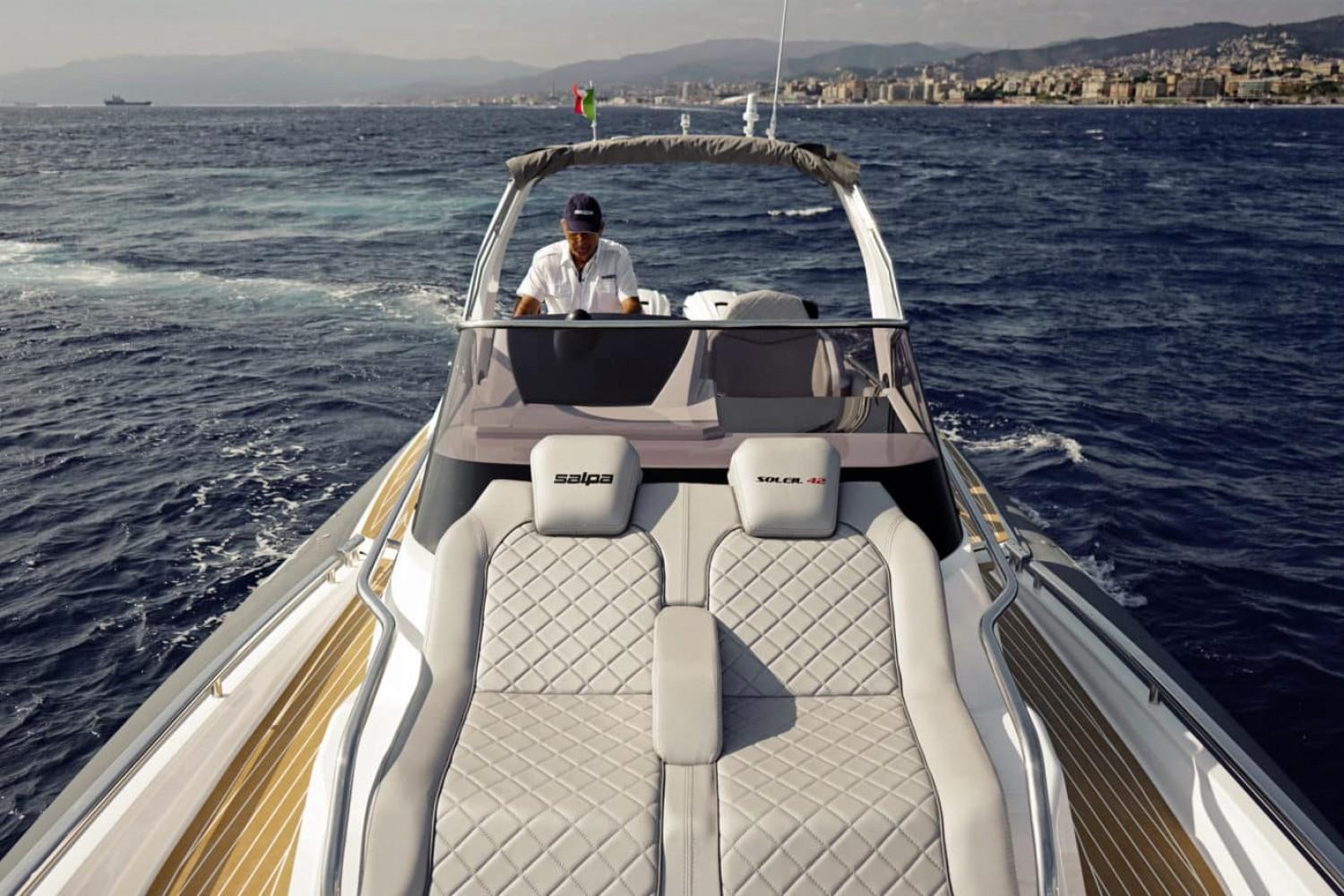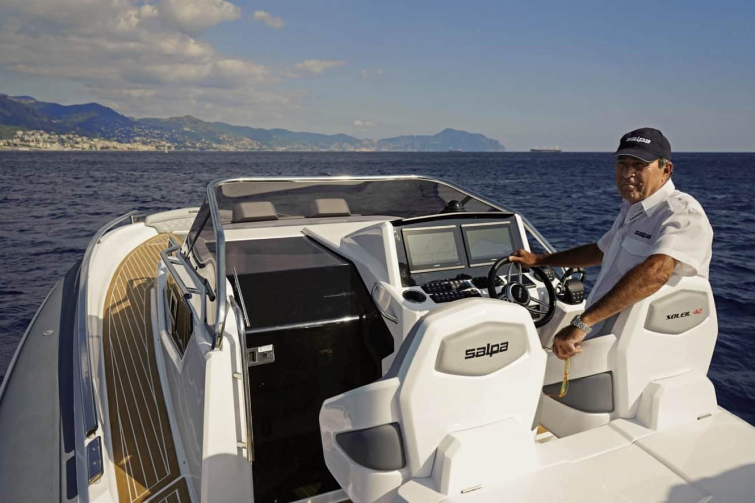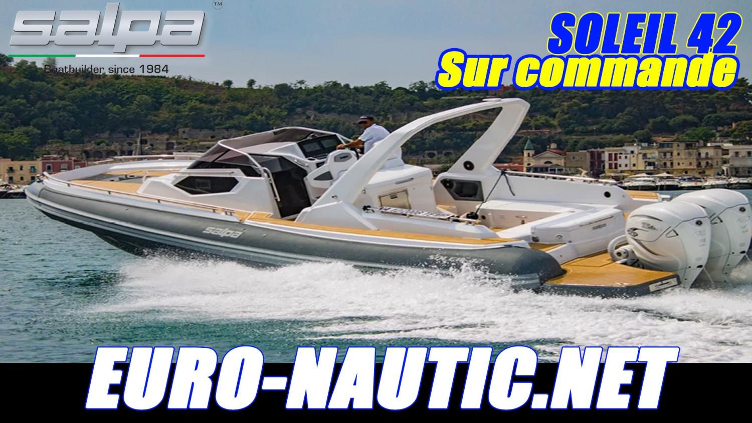EuroNautic NOUVEAU CONCESSIONNAIRE de la très réputé marque de semi-rigide Italien SALPA, vous propose à la vente ce somptueux SOLEIL 42 habitable.Le SOLEIL 42 offre une expérience de mer unique. Avec deux cabines doubles, une salle de bain privative et une hauteur sous barrots supérieure à deux mètres, l’habitabilité est sans concessions sur la ligne et les performances. Le SOLEIL 42 innove et impose de nouveaux standards sur le segment des semi-rigides « Grand tourisme »Au standard:Gelcoat carène et pont, blanc · Roll bar polyester · Taud de soleil sur arches inox · Plan de cuisson · Frigo inox 90 litres dans le cockpit Machine à Expresso · Convertisseur 12/220v 500w · Cabine double propriétaire équipée · Mid-cabin double · Salle de bains avec WC électriques et cuve à eau noires · Douche séparée dans la salle de bain · Chauffe-eau électrique · Guindeau électrique à double commandes (tableau de bord & proue) · Mouillage avec ancre et davier basculant inox · Installation 230V avec chargeur de batteries, prise de quai et rallonge · 2 Plages arrières avec double échelle de bain télescopique · Extension bain de soleil avant douchette sur plage de bain · 3 Pompes de cale automatiques · Meuble de cuisine · Réservoir à carburant 750 litres et réservoir d’eau 225 litres · Console de pilotage avec rangement Pare-brise · Mains courantes inox · Coupe batterie · Feux de navigation · Tableau de bord · Corne de brume 4 taquets d’amarrage Inox · Installation électrique à disjoncteurs magnétothermiques · Sellerie complète cockpit et bain de soleil avant · Direction hydraulique et volant de direction · Revêtement teck (synthétique) sur les plages de bain · Revêtement teck (synthétique) complet cockpit.Fiche produitPrésentation VIDEOEssai PRESSEFinancement LOA sur étude.N'hésitez pas à nous contacter pour plus de renseignement.Bateau semi-rigide similaire à: Sacs, Lomac, Zodiac, Bombard, Zar, Capelli Tempest, BRIG, Tarpon, BWA, Sillinger, Valiant, BSC, 3D Tender, Ranieri, Master, Sea hawkNos secteurs: Port Camargue, Grau du Roi, Grande Motte, Carnon, Palavas, CAP d’Agde, Nîmes, Montpellier, Arle, Ales