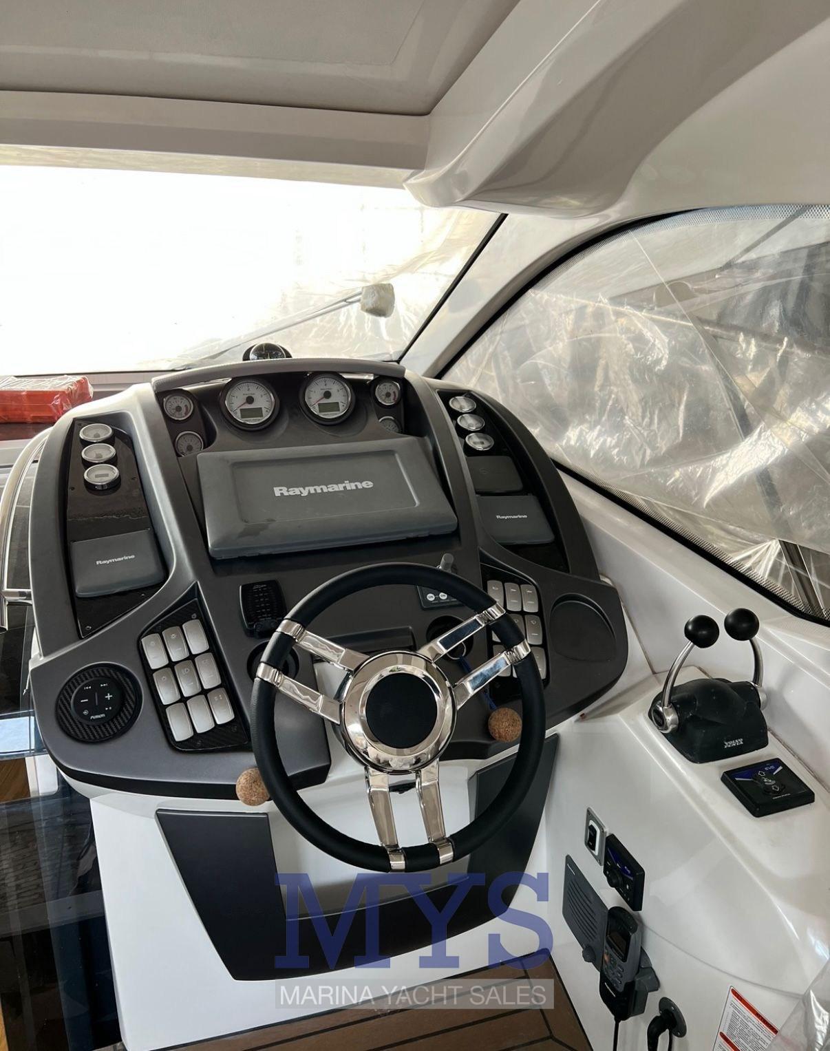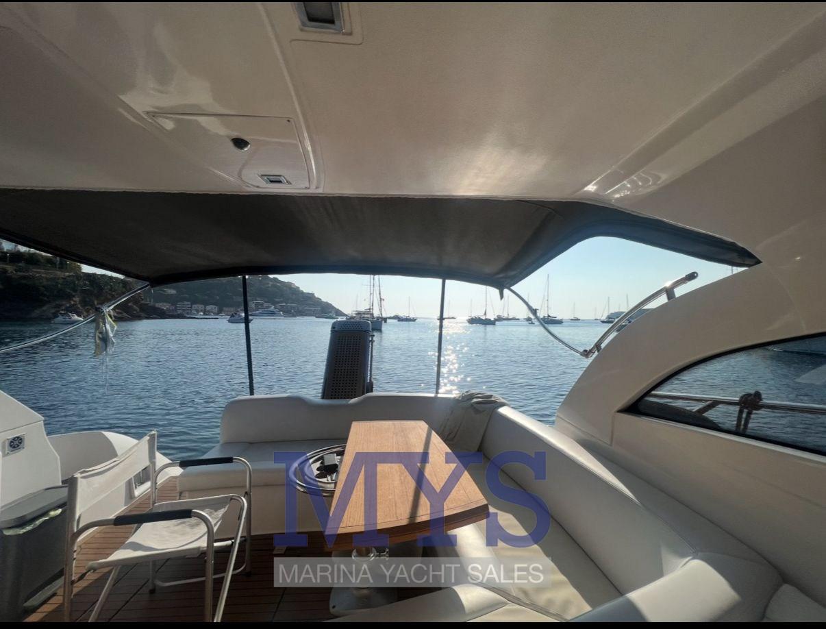 Alarme moteur, Alarme de pompe de cale, Ouverture du compartiment moteur électrique, Eau sous pression, Câble d’alimentation à quai, Couleur spéciale (Scafo grigio), Douche de cockpit, Flaps électriques (Automatici), Hard top, Lavabo dans le cockpit, Passerelle, Plateforme arrière, Pompe de cale automatique, Pompe de cale manuelle, Porte latérale, Cockpit en teck, Prise de quai, Guindeau électrique, Echelle de bain, table de cockpit, Table pliante de salon, Corne.