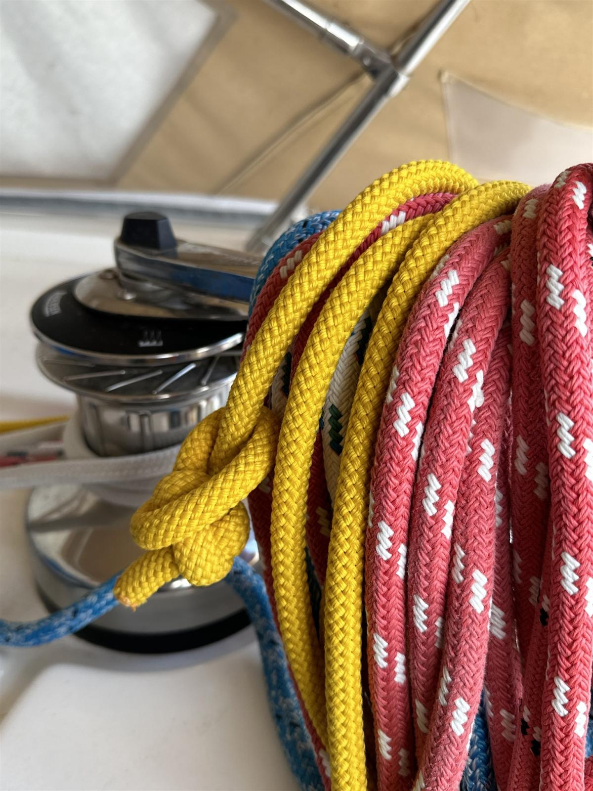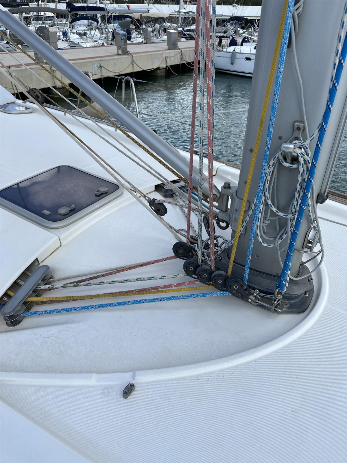 Enrouleur de foc, Chariots à bille de GV, Lazy Bag, Ridoir de pataras (doppio Navtec), barre d'écoute, halebas.