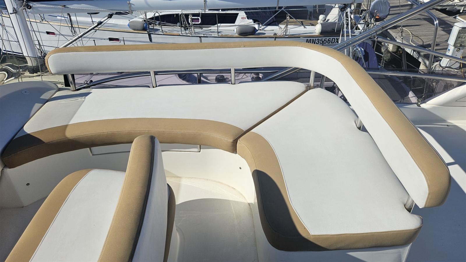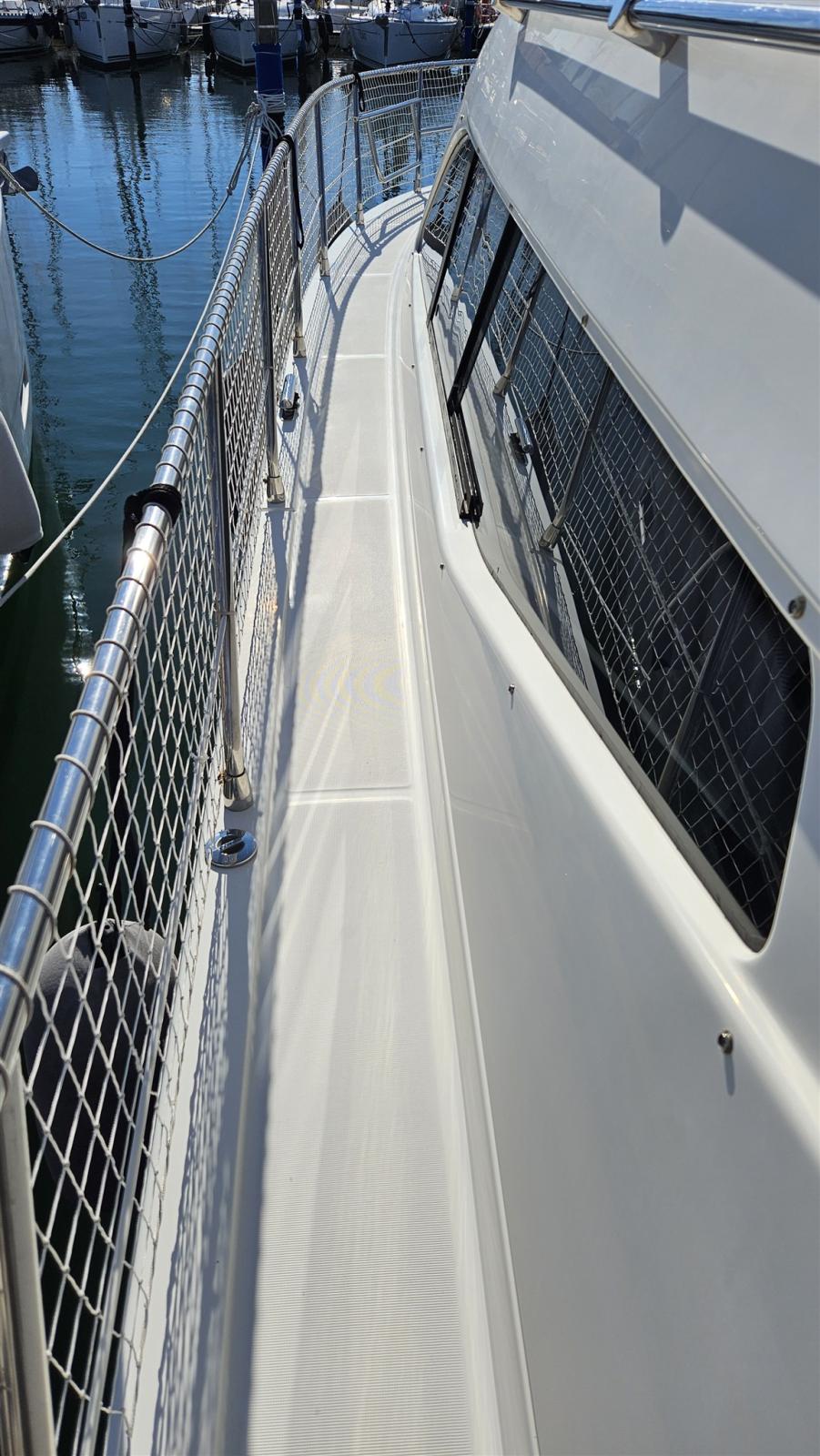 Améliorations apportées en 2020/21 : Coussins intérieurs, parois latérales de la dînette, parois verticales des cabines, nouveaux matelas. Coussins extérieurs bimini sur le flybridge. . Mouche en plexiglax. Salle des machines repeinte. Moteurs : démontage et nettoyage des échangeurs, remplacement de tous les manchons et vérification de la commande du moteur sur ordinateur. Repeinture du moteur. Essieux et hélices équilibrés, bagues remplacées. Gouvernails et loshes révisés.