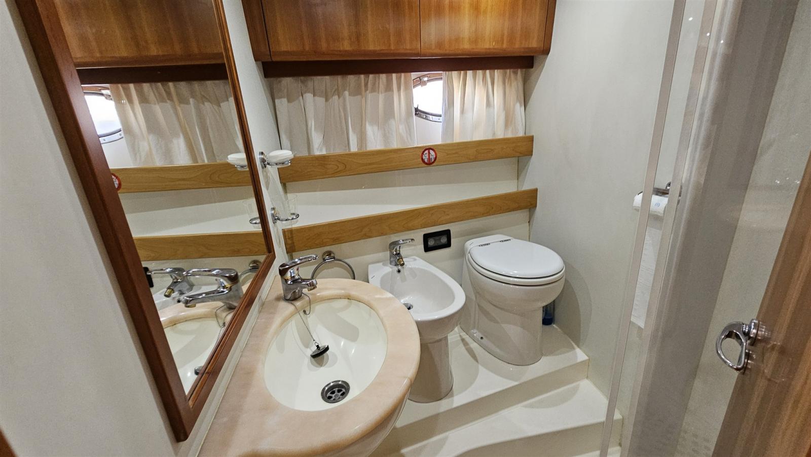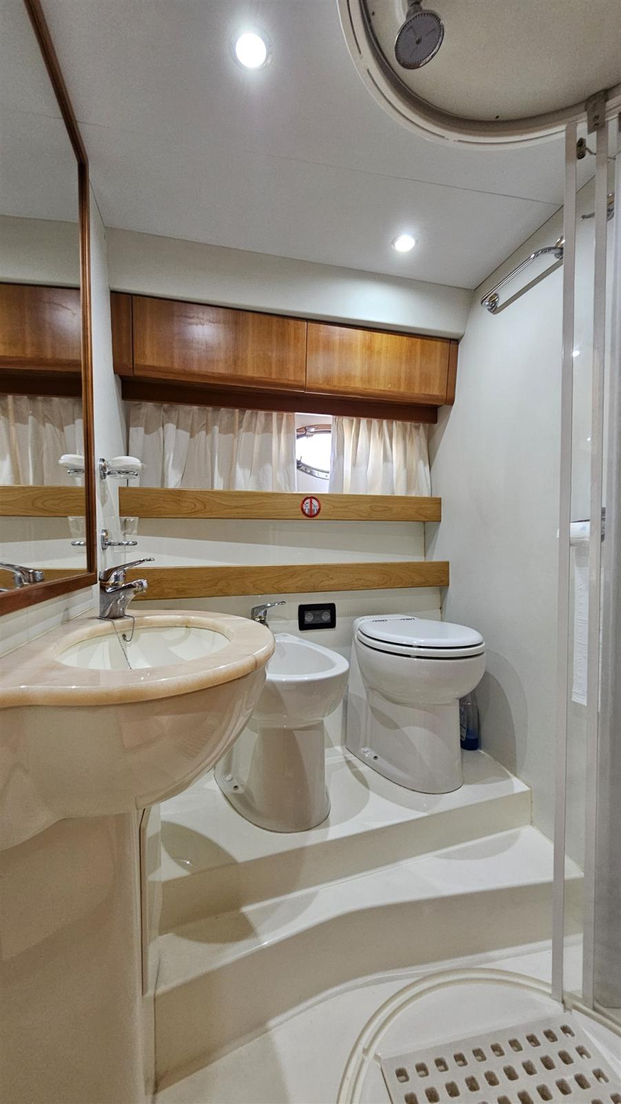 Yacht avec une excellente habitabilité, du grand salon à la cuisine confortable, aux cabines splendides, aux salles de bains avec cabine de douche et bidet, à l’italienne.