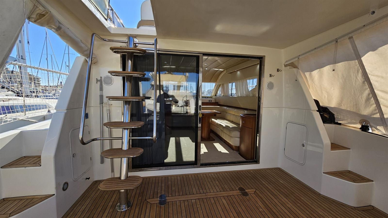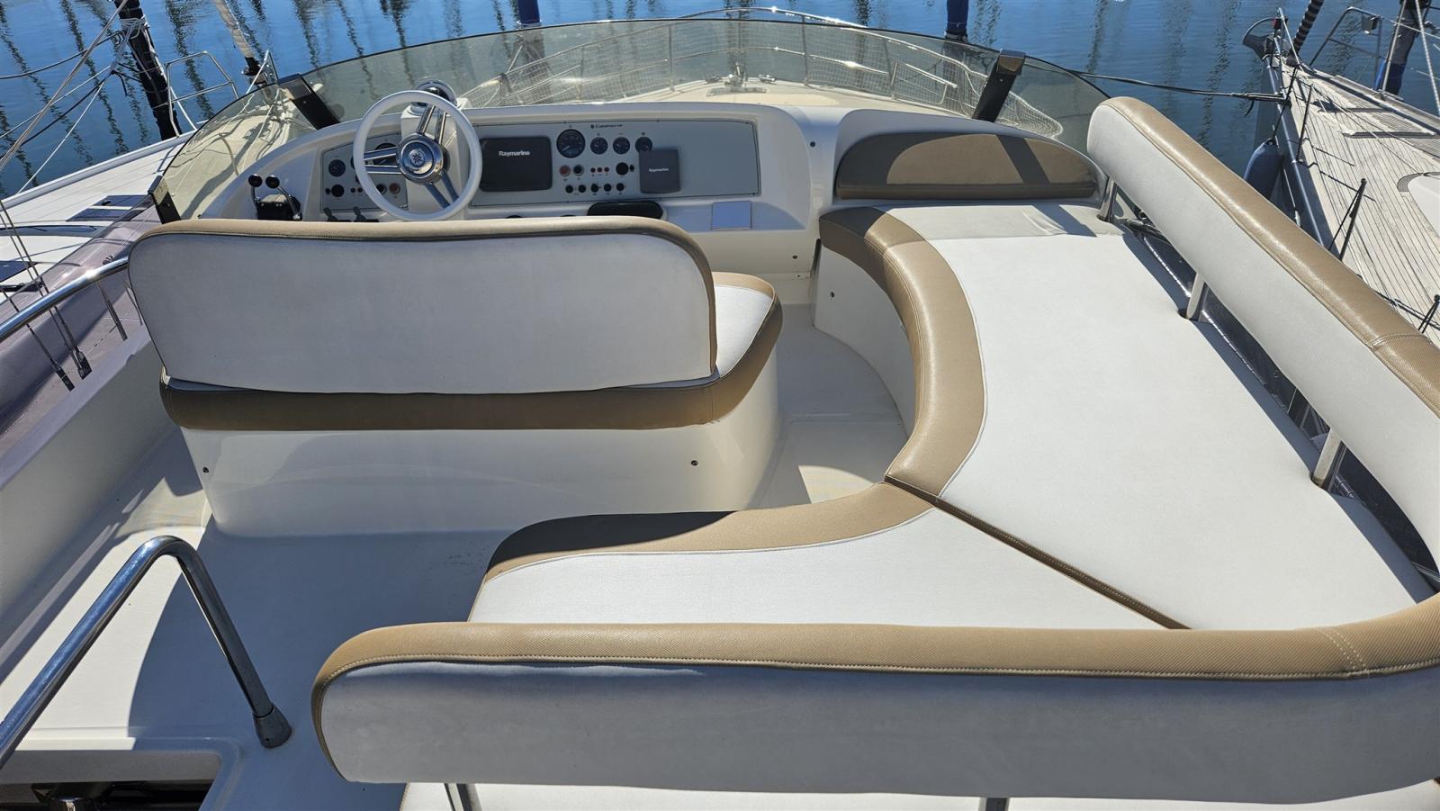 Le cockpit extérieur, les passages latéraux et le bain de soleil avant, ainsi que le flybridge sont des dimensions que l’on trouve normalement dans les grands bateaux.
