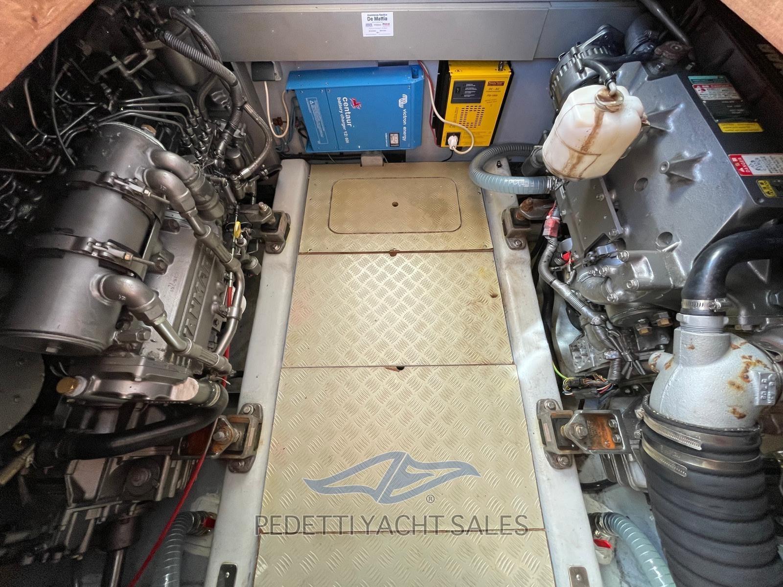 Alarme moteur, Alarme de pompe de cale, Eau sous pression, 4 Batteries, Câble d’alimentation à quai, Douche de cockpit, Double barre à roue, Extincteur(s) fixe(s), Éclairage de courtoisie, 6 Défenses, Plateforme arrière, Pompe de cale automatique, Pompe de cale manuelle, Porte latérale, Cockpit en teck, Prise de quai, Onduleur, Guindeau électrique, Echelle de bain.