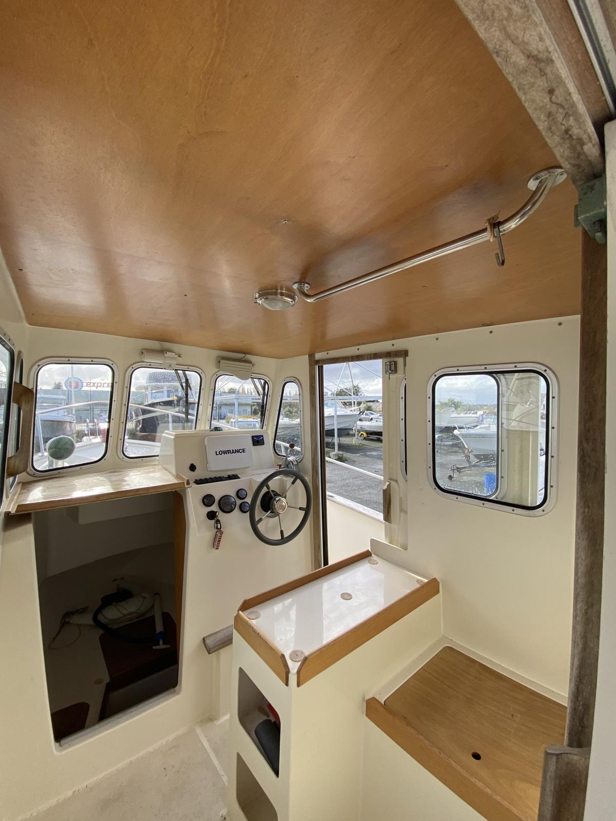 Avec sa timonerie fermée et ses finitions bois, il allie le caractère marin traditionnel à un confort authentique, idéal pour les balades, la pêche ou les escapades à la journée.