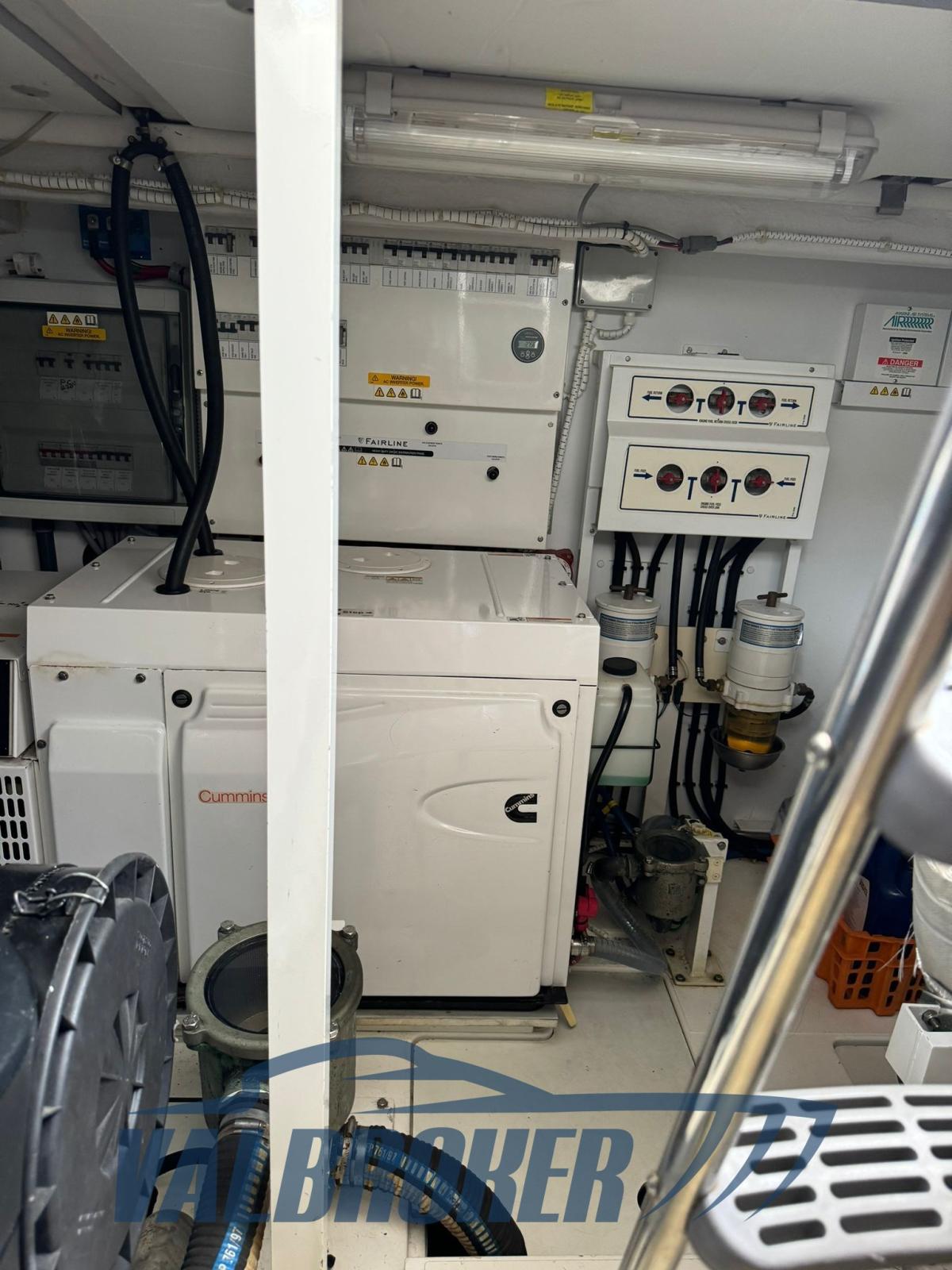 Eau sous pression, Douche de cockpit, Hard top (apribile), Passerelle (idraulica), Plateforme arrière (teak, idraulica), Porte latérale, Cockpit en teck, Guindeau électrique, Selles pour Annexe, table de cockpit (teak), Annexe (Williams 80 kw).
