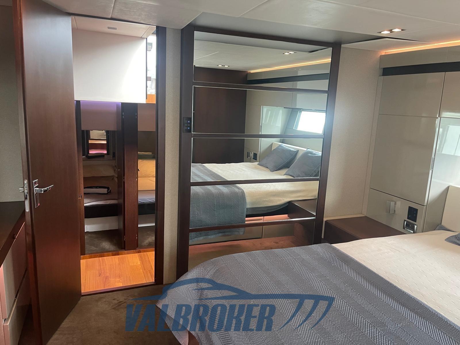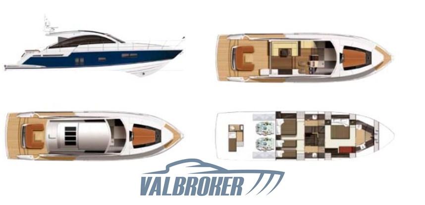 Sportcruiser élégant et contemporain. Cabine principale pleine poutre avec salle de bain attenante, deux cabines d’amis avec salle de bain attenante et cabine d’équipage. Propulsé par 2 moteurs Volvo Penta D13 à transmission par arbre de 900 HP, seulement 700 heures de moteur.