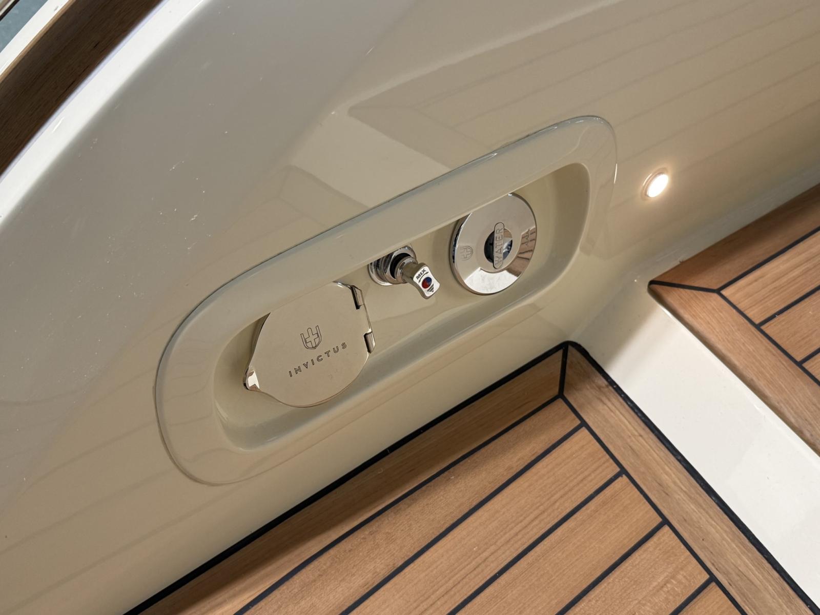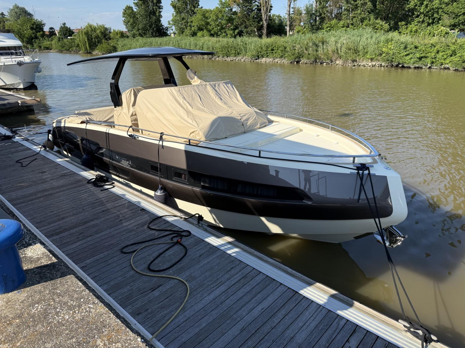 Alarme moteur, Eau sous pression, Passavant en teck, Couleur spéciale (WILD BRONZE), Douche de cockpit, Flaps électriques, Hard top, Extincteur(s) fixe(s), Indicateurs de flaps, Lavabo dans le cockpit, Éclairage de courtoisie, Plateforme arrière, Pompe de cale automatique, Cockpit en teck, Prise de quai, Guindeau électrique, Echelle de bain, table de cockpit, Corne.