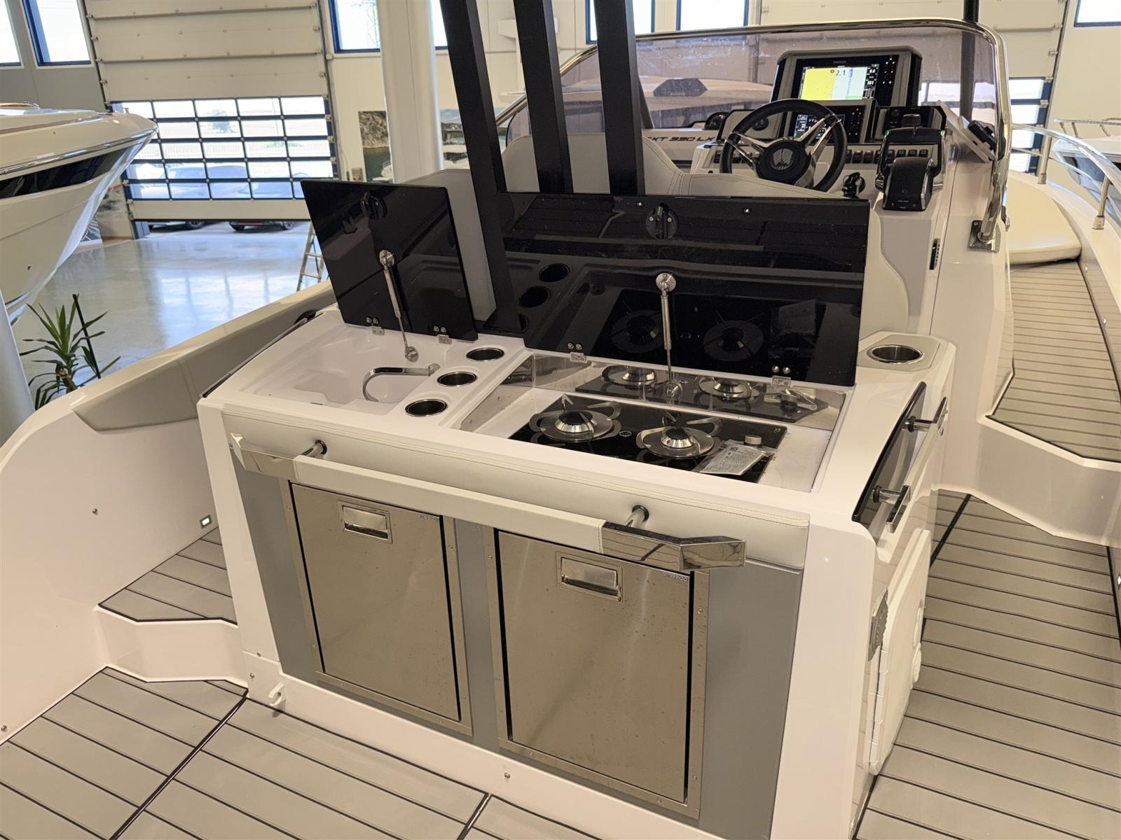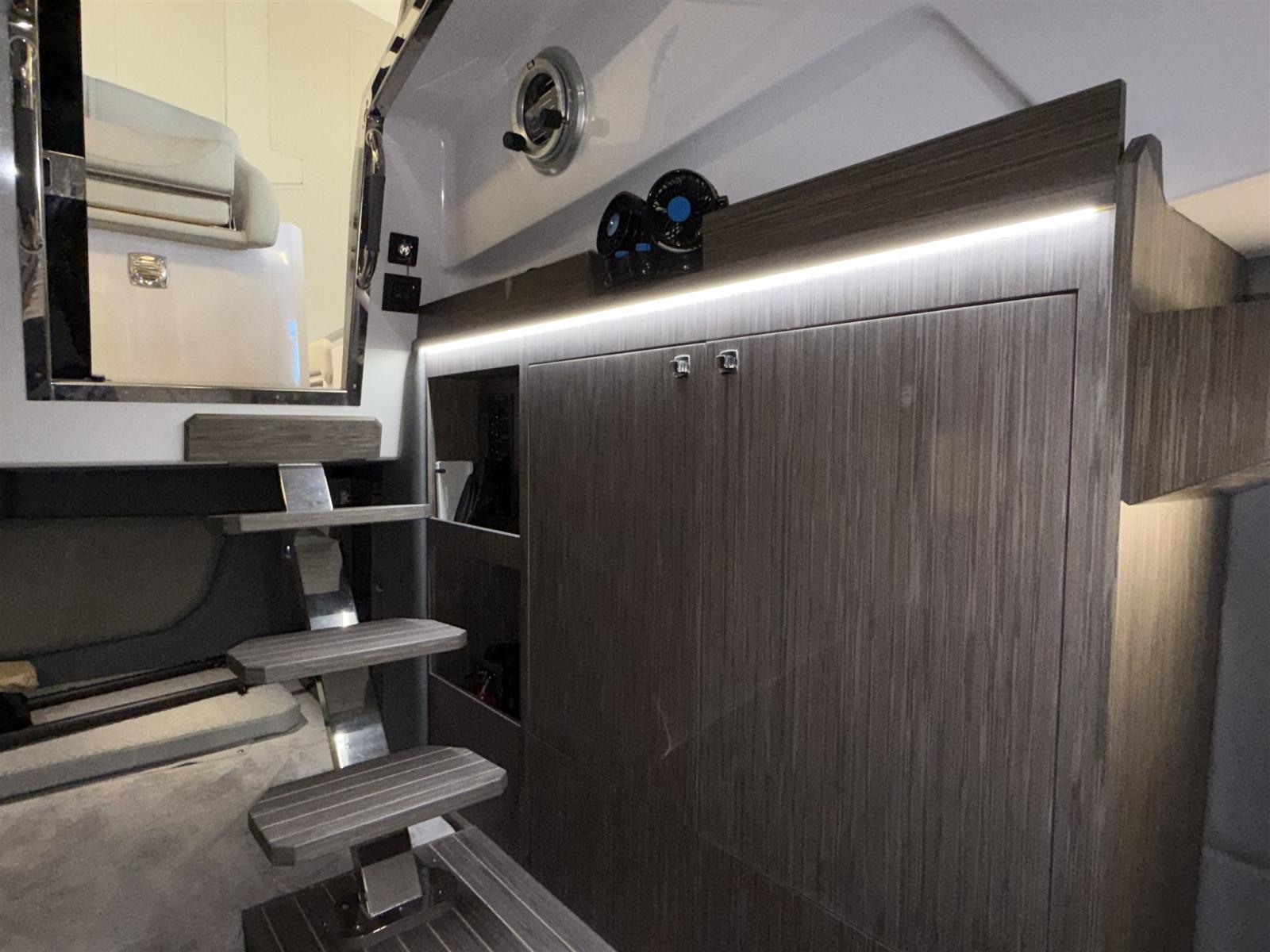 Alarme moteur, Eau sous pression, Douche de cockpit, Flaps électriques, Lavabo dans le cockpit, Éclairage de courtoisie, Plateforme arrière, Prise de quai, Guindeau électrique, Echelle de bain, table de cockpit, Corne, T-Top.
