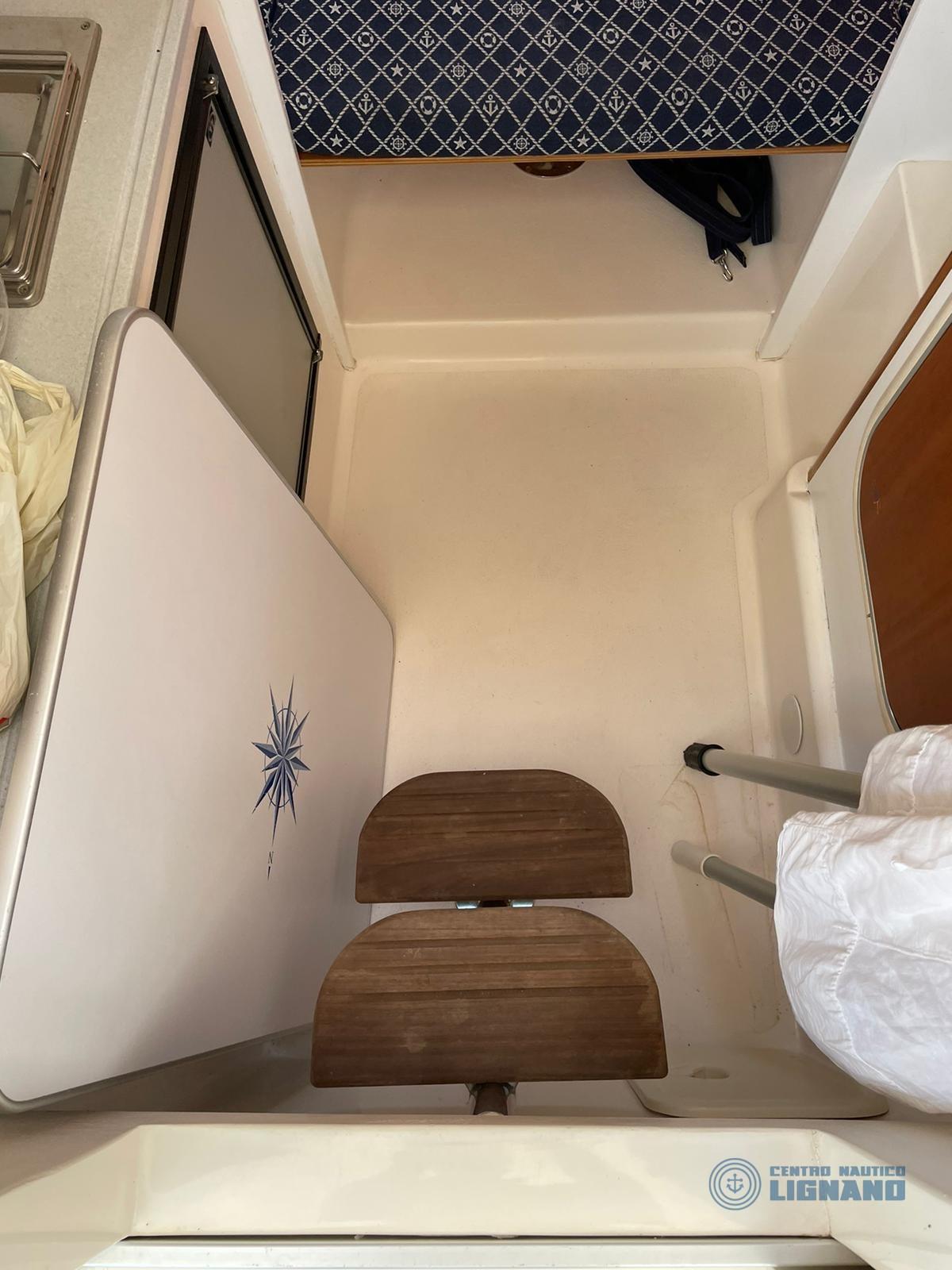 Alarme moteur, Eau sous pression, 3 Batteries, Câble d’alimentation à quai, Couleur spéciale, Filière, Douche de cockpit, Éclairage de courtoisie, Pompe de cale manuelle, Porte latérale, Cockpit en teck, Prise de quai, Rollbar, Guindeau électrique, Echelle de bain, Corne.