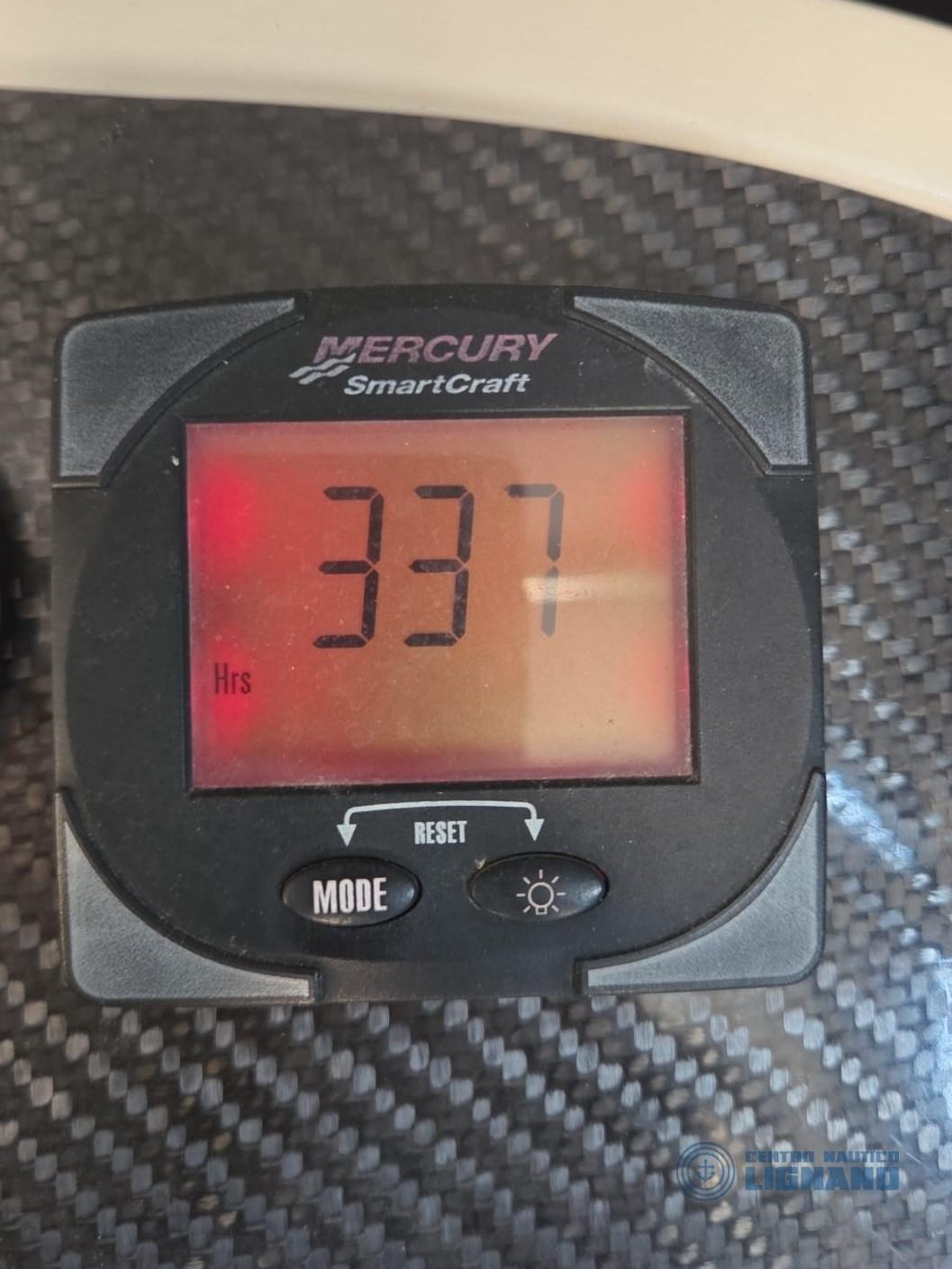 CONSOLE : commande moteur avec panier, instruments moteur (4), ordinateur Mercruiser SmartCraft, système GPS Garmin sur support avec échosondeur avec transducteur, radio VHF avec antenne,