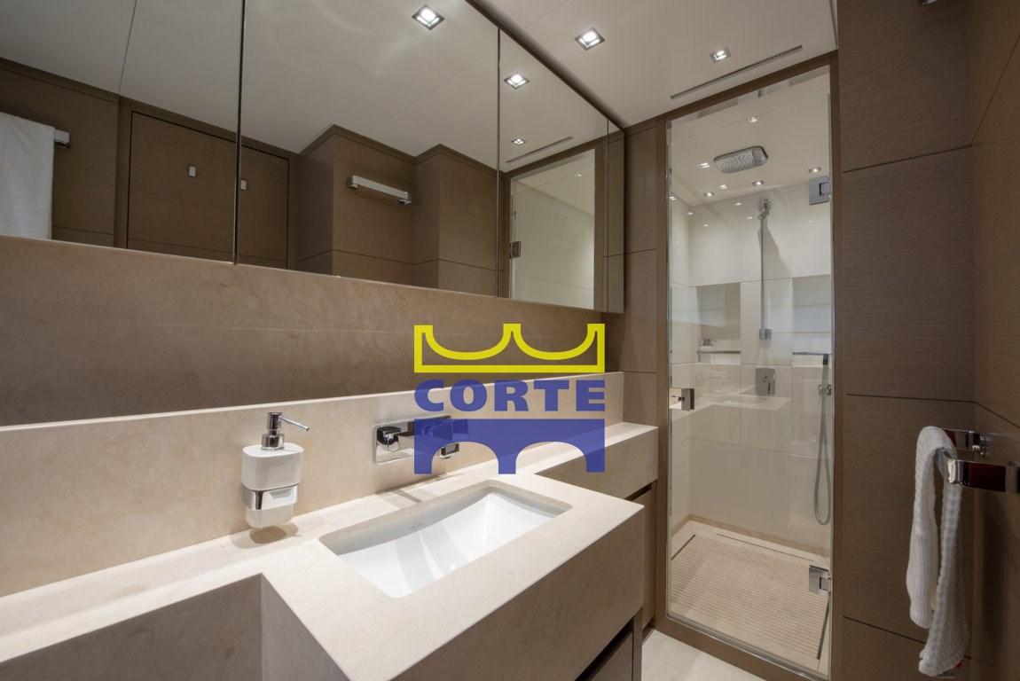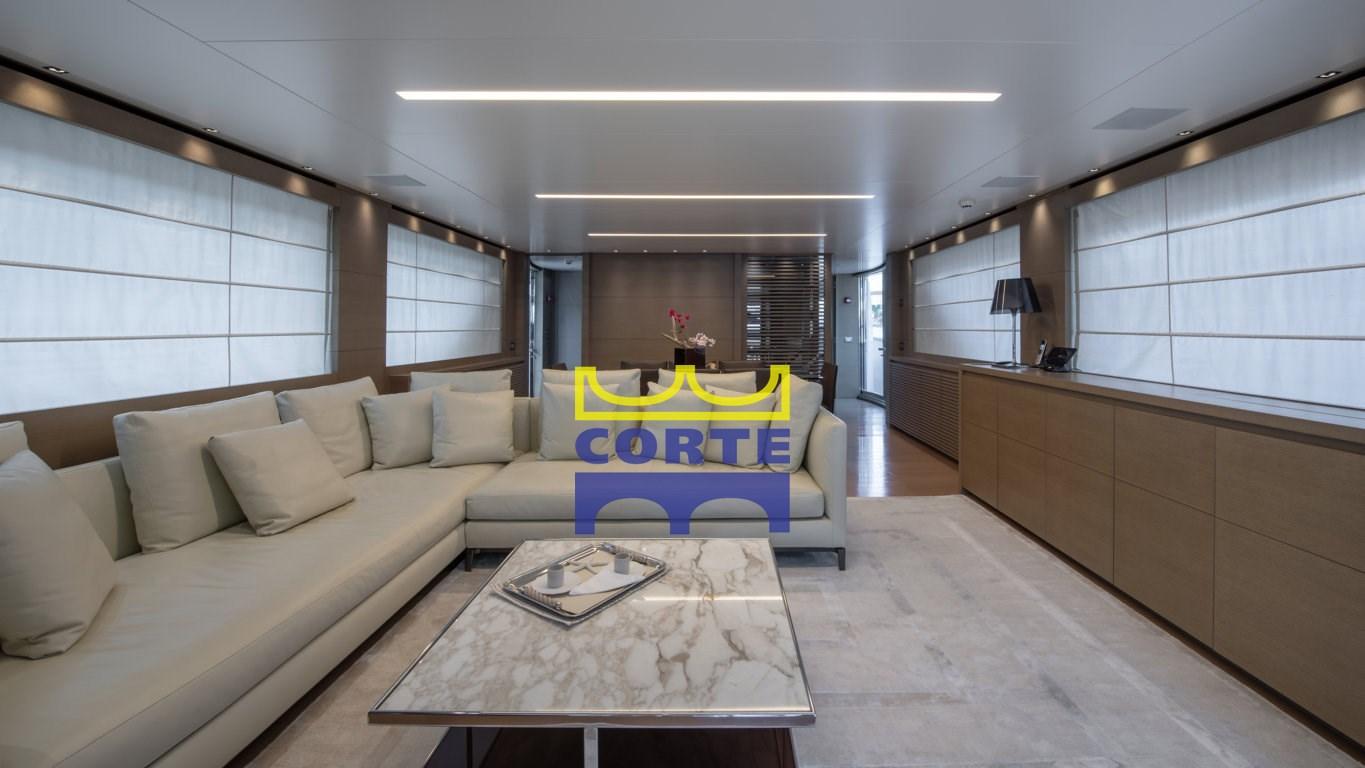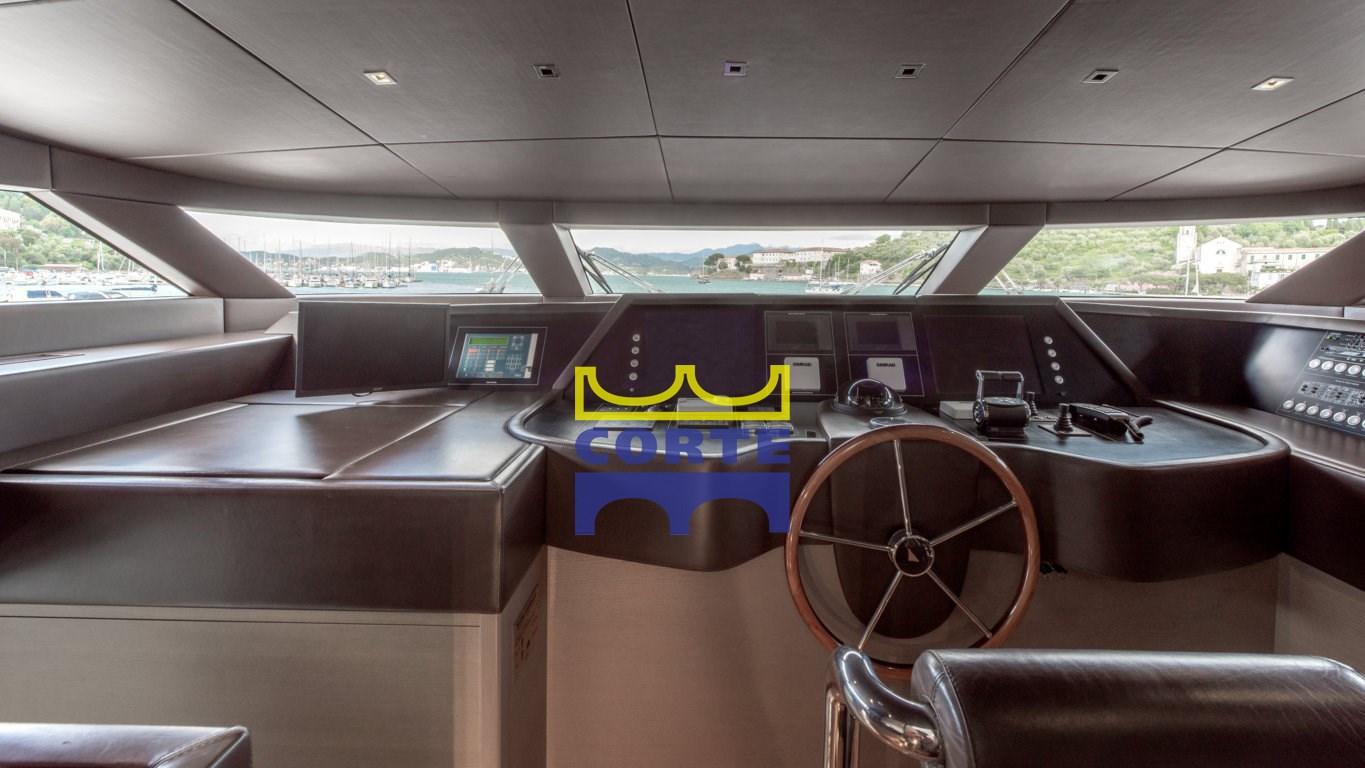 Alarme gaz, Alarme moteur, Alarme de pompe de cale, 2 Ancre, Eau sous pression, Système de vidange, Passavant en teck, 2 Chargeur de batterie, Douche de cockpit, Double barre à roue, Propulseur de poupe (idraulica), Propulseur d'étrave (elettrica), Phare de poursuite, Flaps hydrauliques, Garage à annexe, Grue pour jet-ski, Hard top, Extincteur(s) fixe(s), Indicateurs de flaps, Lavage de chaine, Éclairage de courtoisie, Spots sous-marins, Passerelle (elettroidraulica a scomparsa), Plateforme arrière (poppa in teak), Pompe de cale automatique, Porte latérale, 2 Porte latérale, Cockpit en teck, Prise de quai, Connexion eau sous pression à quai, Répétiteur électronique, 2 Guindeau électrique, Echelle de bain, Système de filtration des eaux usées, Stabilisateurs (pinne), table de cockpit, Corne, 2 Winch électrique arrière, Winch électrique avant.