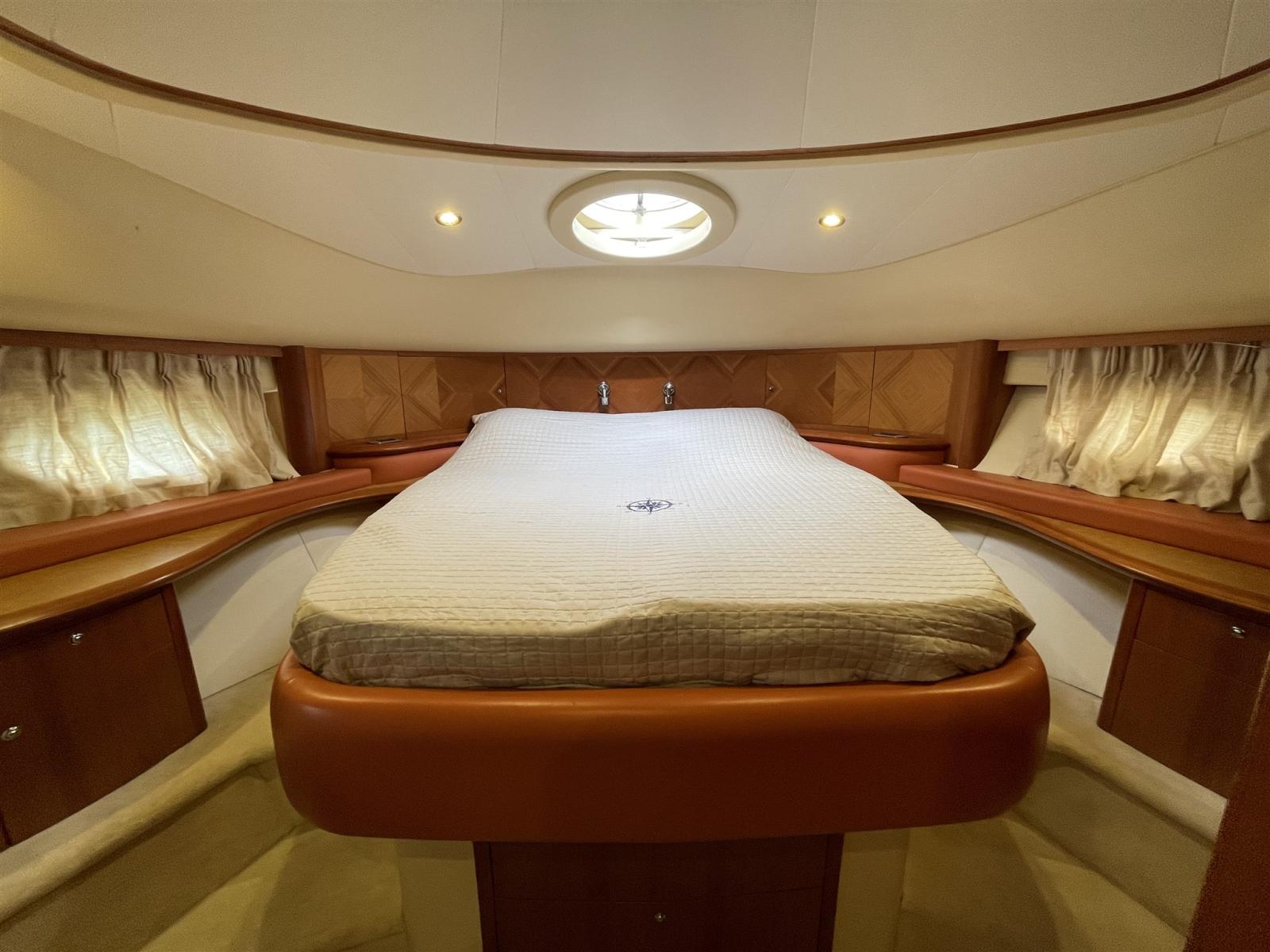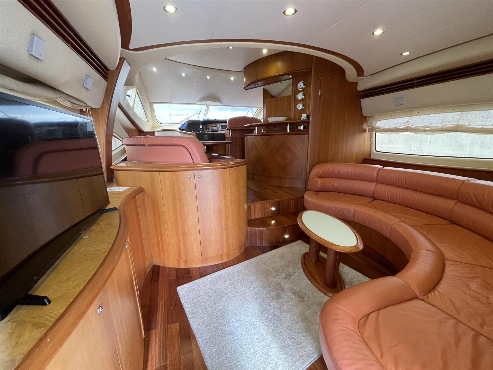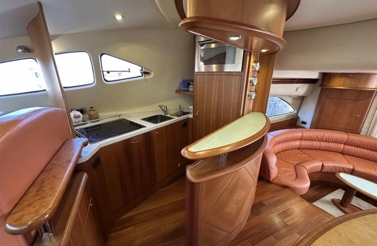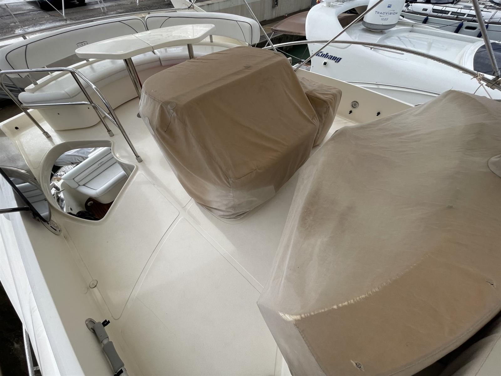 Alarme gaz, Alarme moteur, Alarme de pompe de cale, Douche de cockpit, Double barre à roue, Flaps hydrauliques, Éclairage de courtoisie, Passerelle, Pompe de cale automatique, Pont en teck, Porte latérale, Cockpit en teck, Prise de quai, Guindeau électrique.