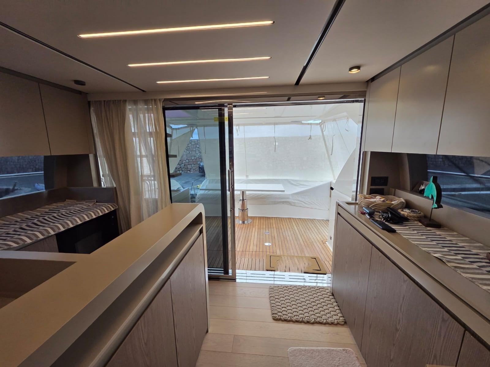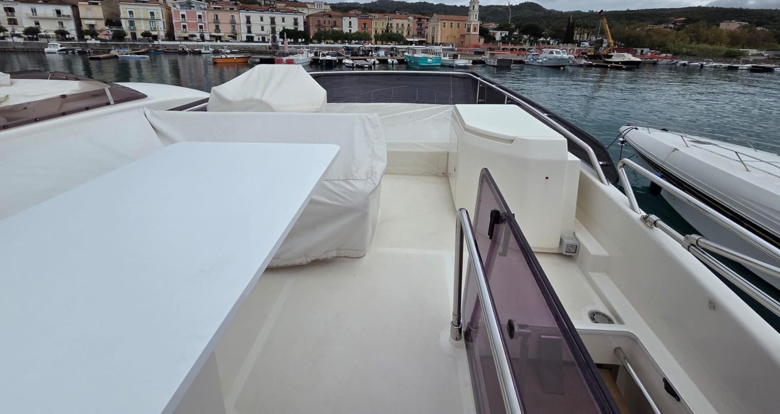 Ancre (in acciaio maggiorata Ultra 35 kg - differenza da standard, con catena in acciaio inox 100 m incluse girella e musone), Eau sous pression, 13 Batteries (8 servizi + 4 generatore), Chargeur de batterie (Master Mass Combi 24V 2500W 60 A), Douche de cockpit, Spots sous-marins (on cambio colore e controllo dalla plancia principale), Passerelle (con telecomando), Plateforme arrière, Pompe de cale automatique, Pompe de cale manuelle, Cockpit en teck, Onduleur, Guindeau électrique, Echelle de bain, table de cockpit, Annexe.