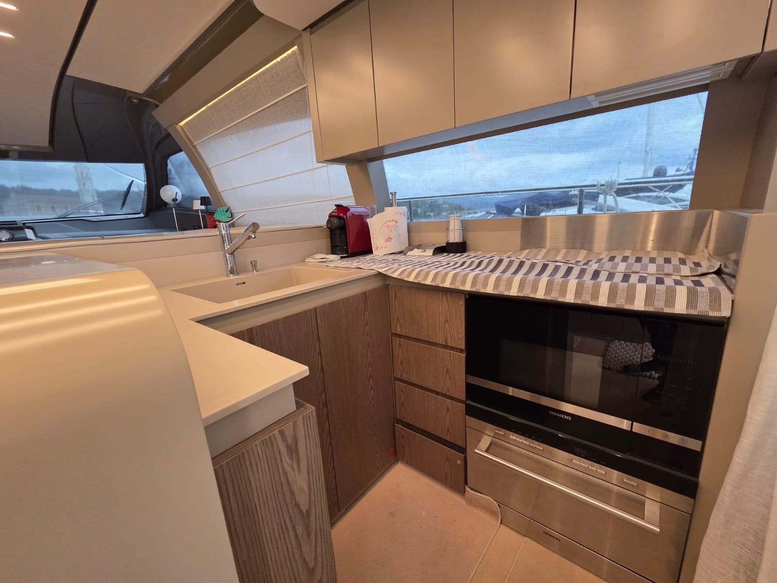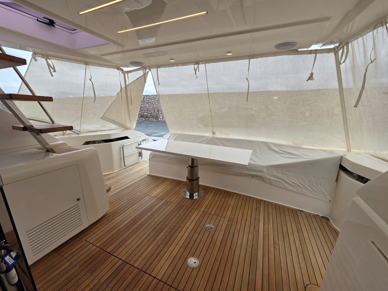 3 postes de pilotage à l’arrière, système audio-visuel, plate-forme arrière submersible, auvent arabe avant avec poteaux en carbone, apiculteur, stabilisateur GYRO (Seakeeper), filtre RACOR pour générateur, séparateur de fumée pour générateur - chacun, prises électriques allemandes schuko + prises internes allemandes supplémentaires schuko - chacune, TV : préparation électrique pour TV 37 »-42 », PC : routeur Internet multimédia côtier avec wi-fi, Présentoir SIMRAD Duplex dans le poste de pilotage principal et le siège du flybridge, Primer sous antifouling, Matelas double Queen size (à ressorts) - Matelas simple (à ressorts), Ailes cylindriques, Ailes sphériques, Parquet sur mesure sur le pont principal, Coussins extérieurs en tissu Silvertex, Parquet dans le sol du pont inférieur, Housses de siège et coussins d’ombrage (cockpit, proue, flybridge)