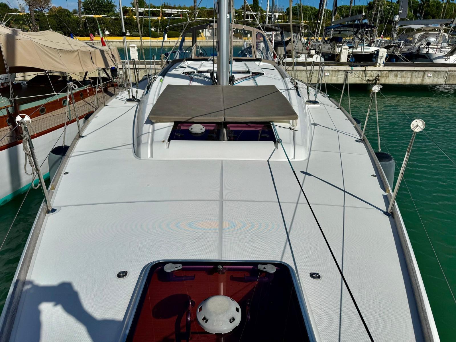 Ancre (DELTA), Eau sous pression, 11 Batteries (1 MOTORE + 6 SERVIZI + 4 ELICA DI PRUA 2025), 2 Chargeur de batterie, Câble d’alimentation à quai, Douche de cockpit, Double barre à roue, Bossoir pour HB, Défenses, Passerelle, Plateforme arrière, Pompe de cale manuelle, Porte latérale, Cockpit en teck, Prise de quai, Guindeau électrique, Gréement monotoron, Echelle de bain, Chaise support HB, table de cockpit, Winch, 3 Winch électrique.