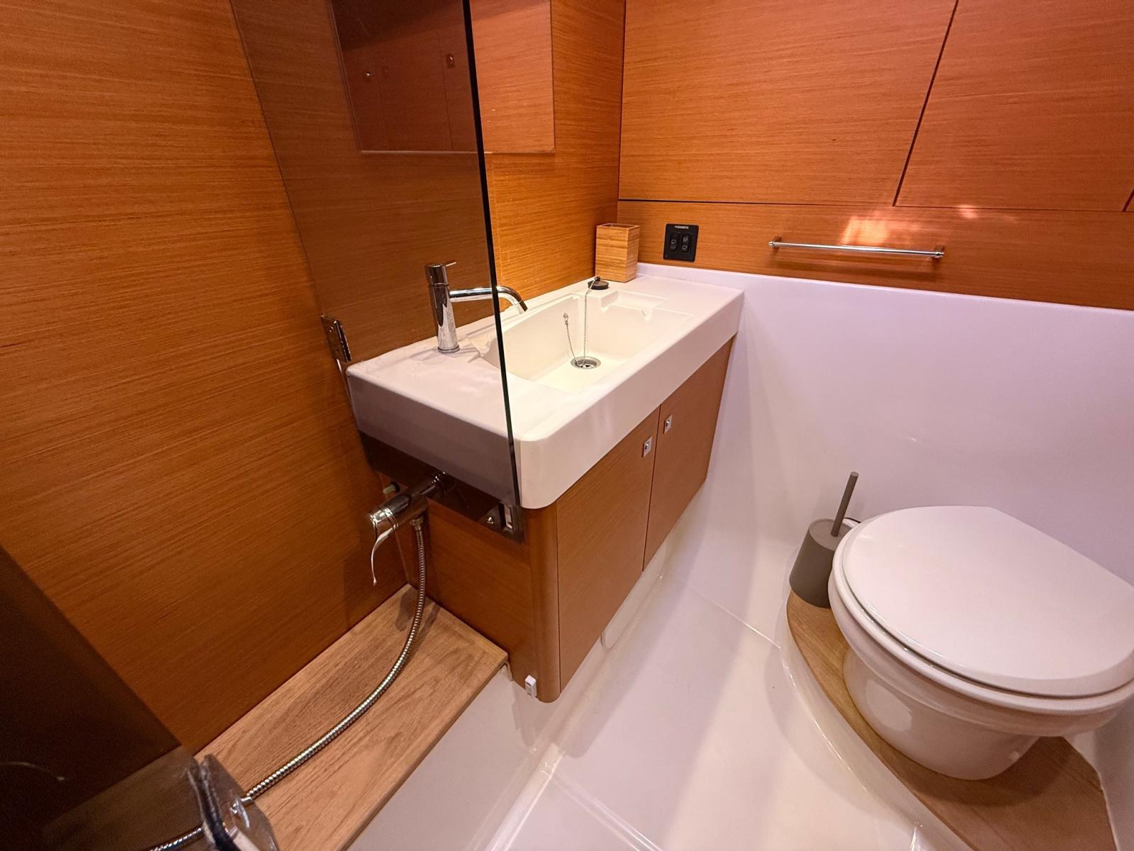 Ballon d'eau chaude, Air Conditionné, Dessalinisateur (SCHENKER 60), Indicateur du réservoir de carburant, Jauge de Réservoir d’Eau, Plancher intérieur en bois, Prises interieures 12v, Prises interieures 220v, Réservoir d'eau noire, 2 Toilettes électriques.